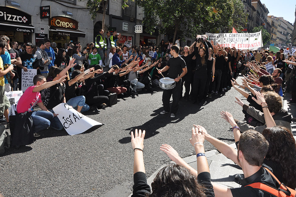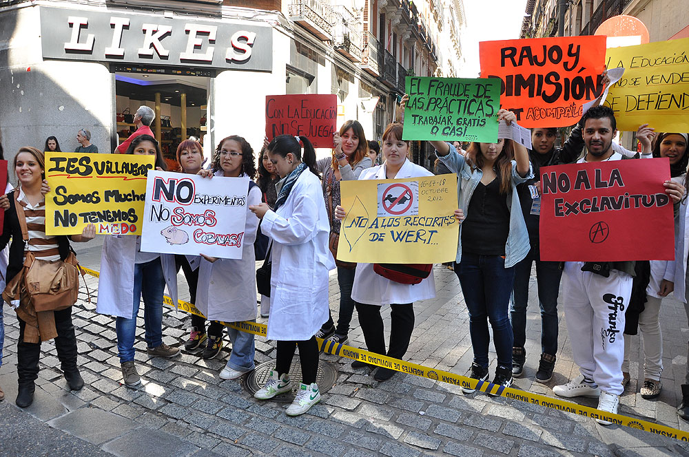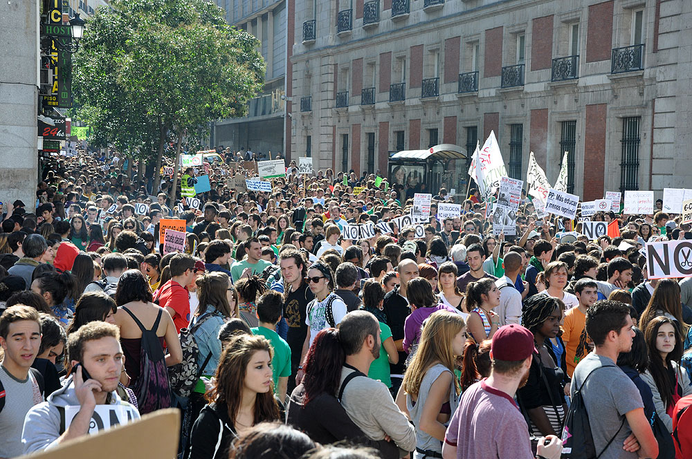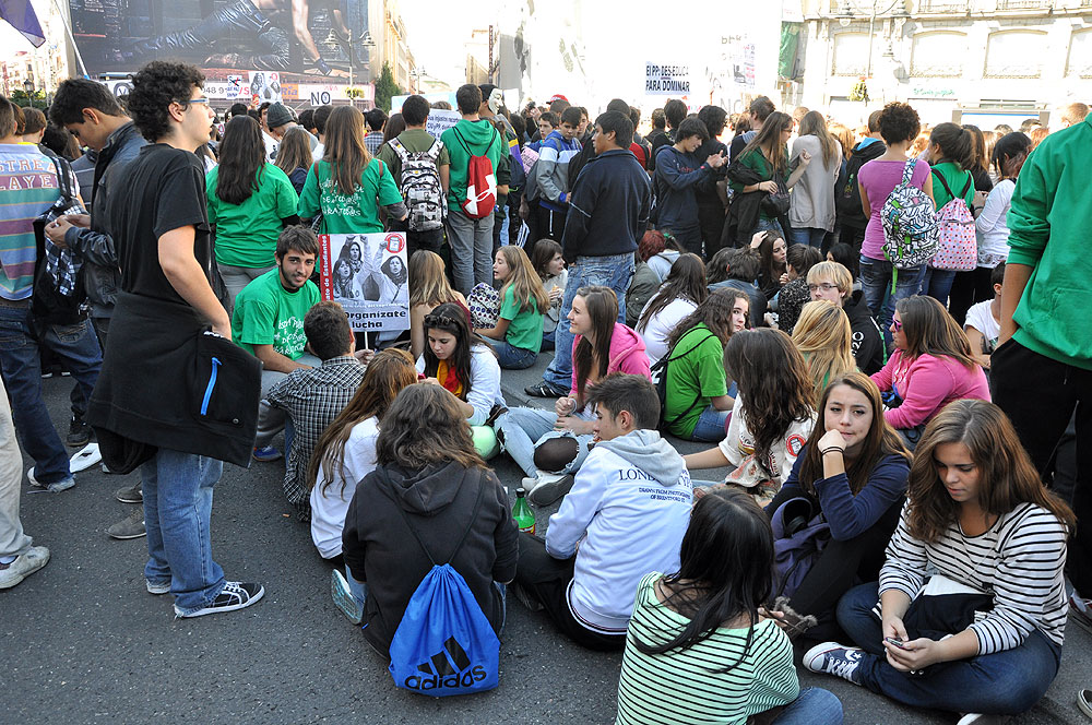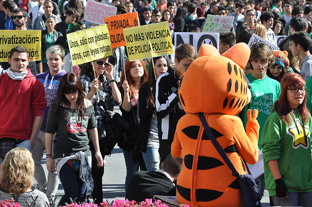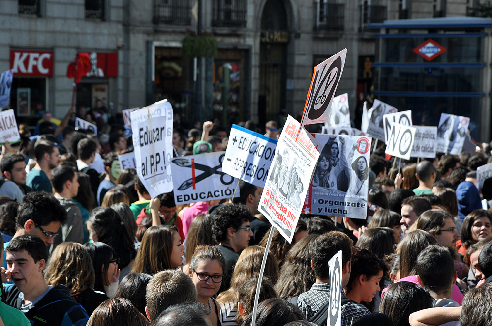 Centenares de jóvenes se han dado cita en la capital de España para manifestarse contra el ministro de educación José Ignacio Wert y la política en educación del Partido Popular.