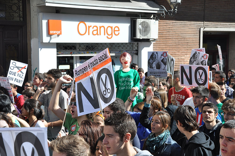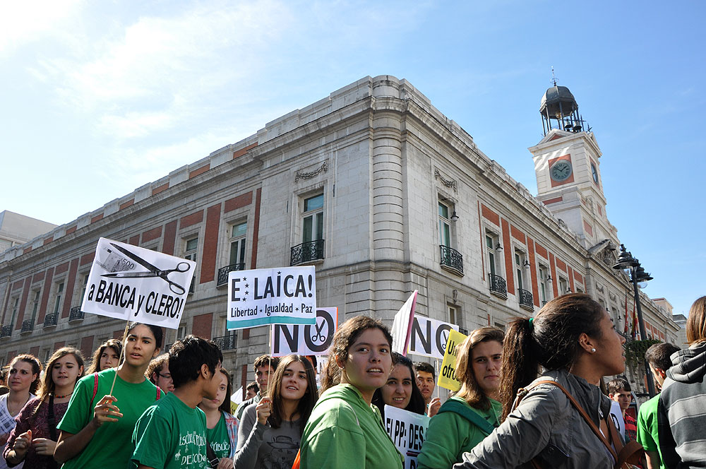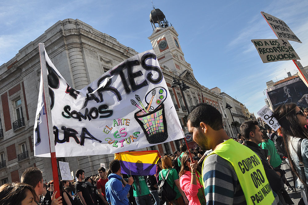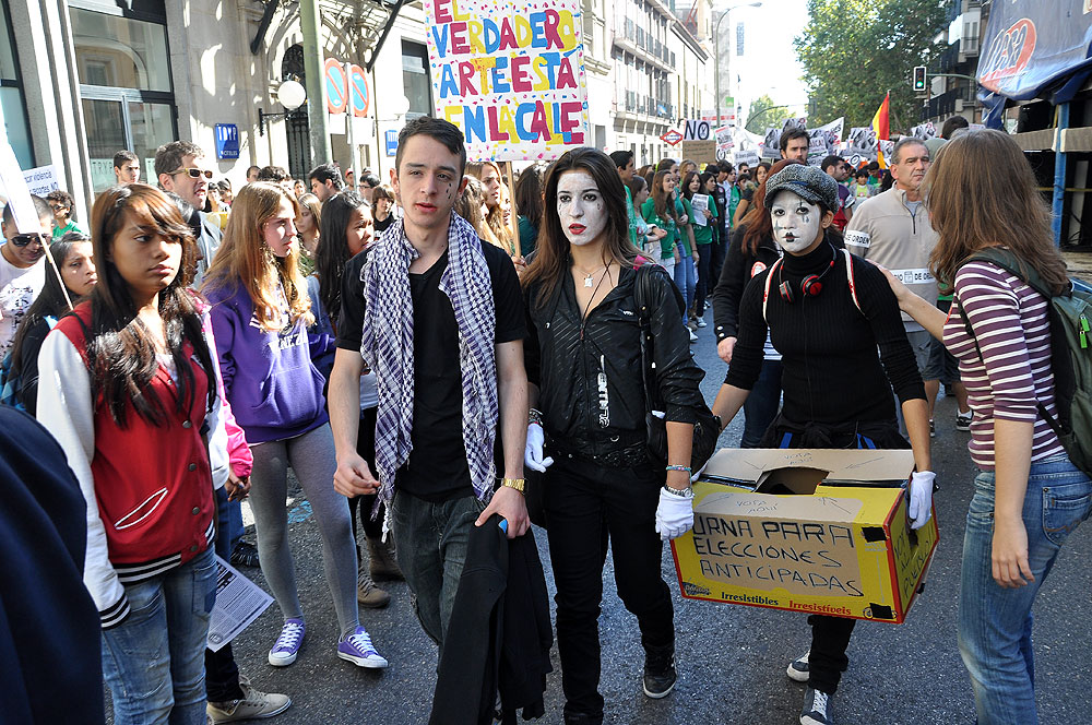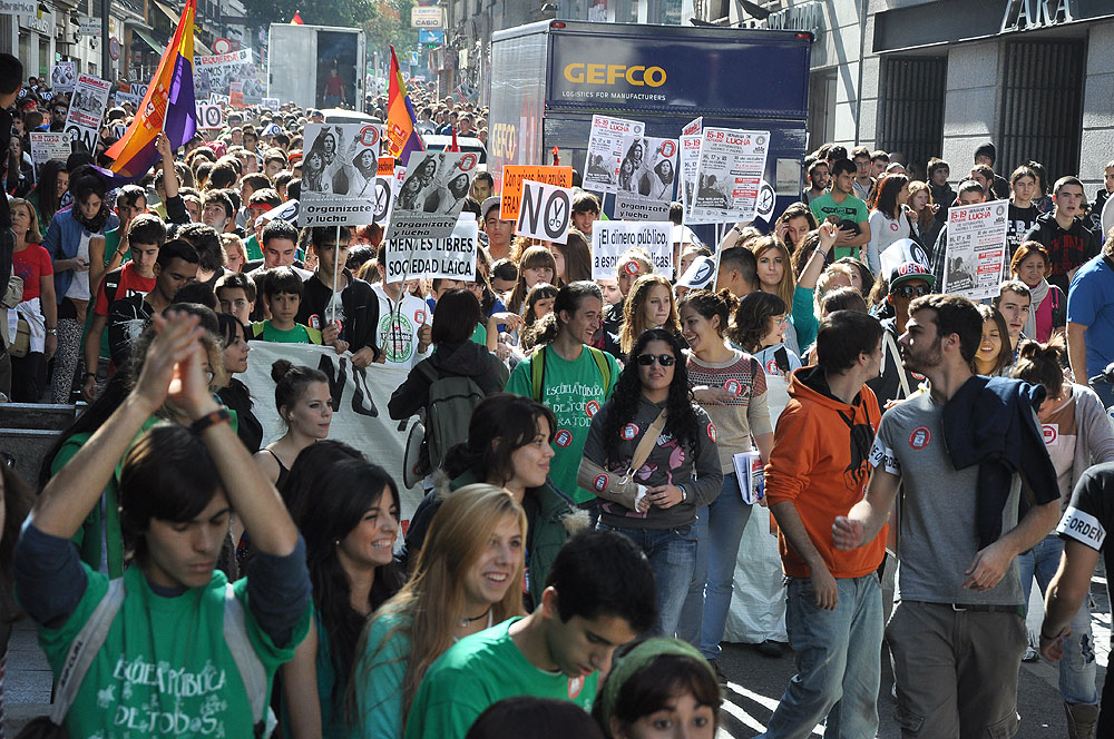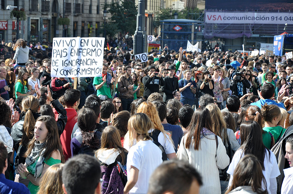 Centenares de jóvenes se han dado cita en la capital de España para manifestarse contra el ministro de educación José Ignacio Wert y la política en educación del Partido Popular.