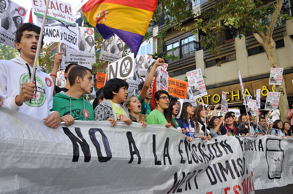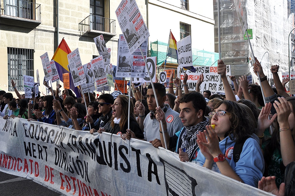"No a la educación franquista, Wert dimisión" reza la pancarta de cabecera de la manifestación.