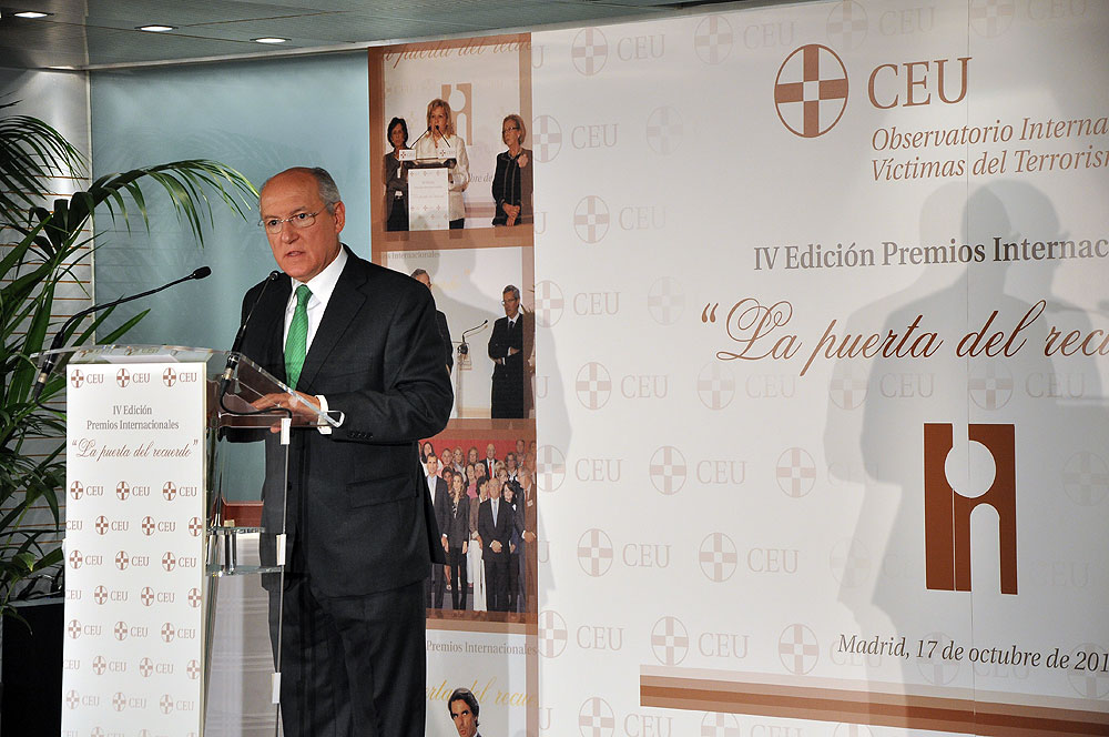 La entrega de premios comenzó con la intervención del director del Observatorio Internacional de Víctimas del Terrorismo del CEU, Cayetano González.