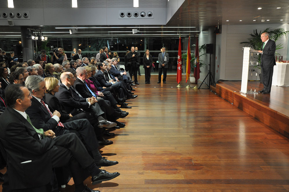 El consejero de Presidencia y Justicia, y portavoz del Gobierno de la Comunidad de Madrid, Salvador Victoria en su discurso momentos antes de hacer entrega del premio a Ángeles Domínguez.