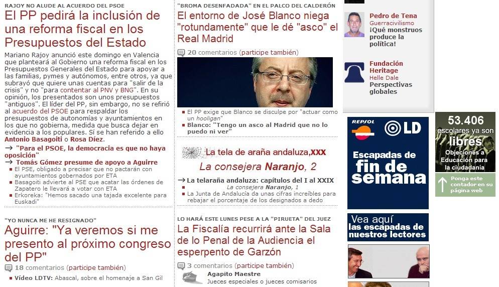 Tal día como hoy, 19 de octubre, pero de 2008, Libertad Digital llevaba en su portada de ese domingo el desmentido por parte de personas cercanas al vicesecretario general del PSOE titulando "El entorno de José Blanco niega "rotundamente" que le dé "asco" el Real Madrid". Respondían así a la información publicada por el diario deportivo Marca que aseguraba que Blanco, durante el transcurso del derbi entre el Atlético de Madrid y el Real Madrid, dijo que "siempre he sido del Atlético, le tengo un asco al Madrid que no lo puedo ni ver".