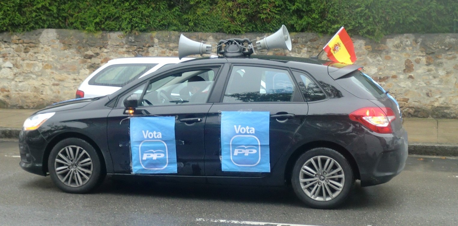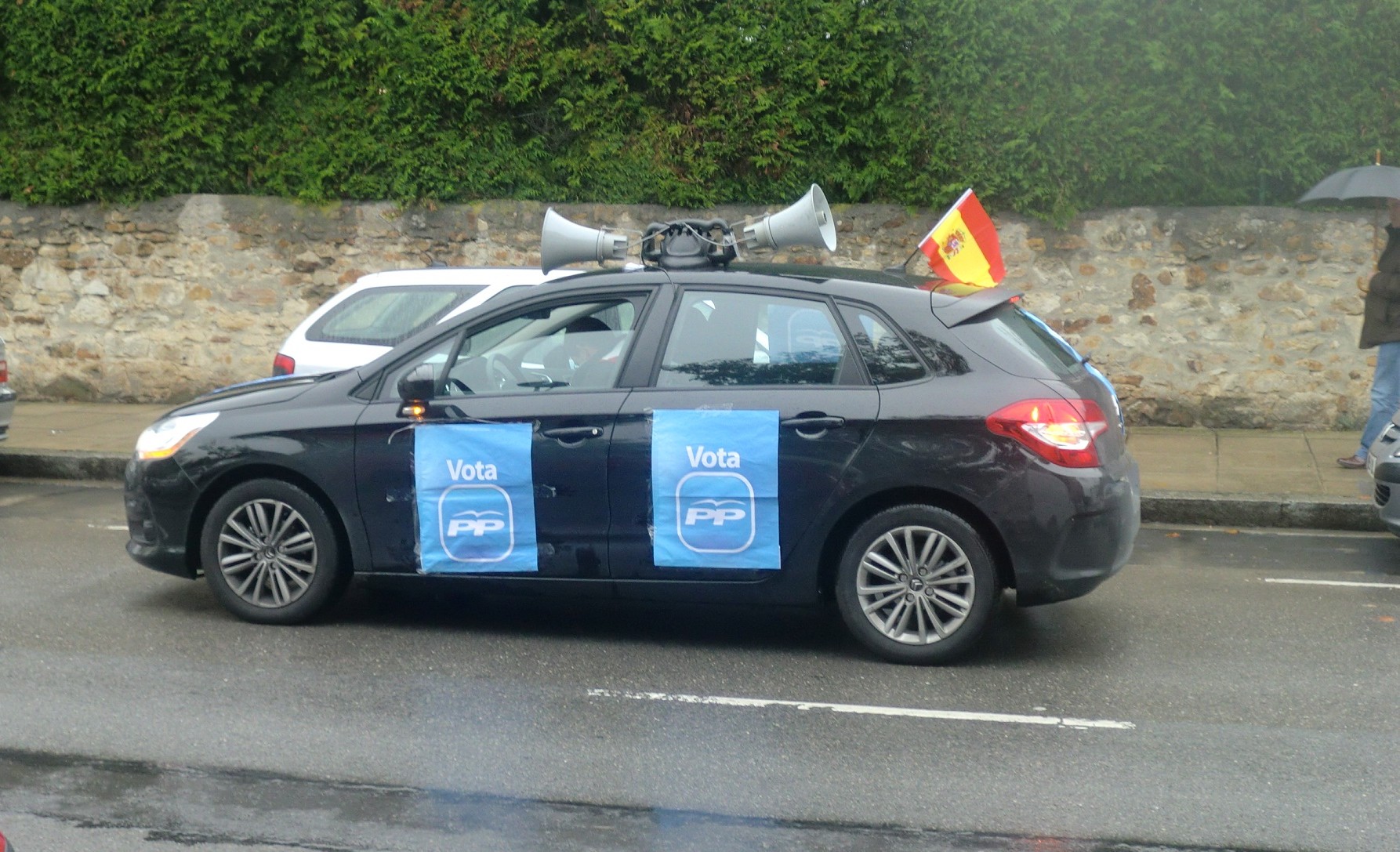 Vista de la publicidad electoral de EH Bildu desde el interior del coche electoral del PP.