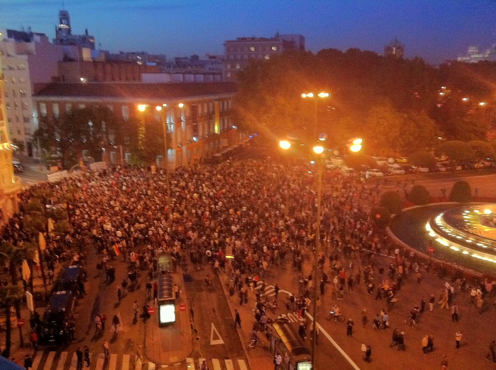 Los manifestantes no llenan la plaza de Neptuno.