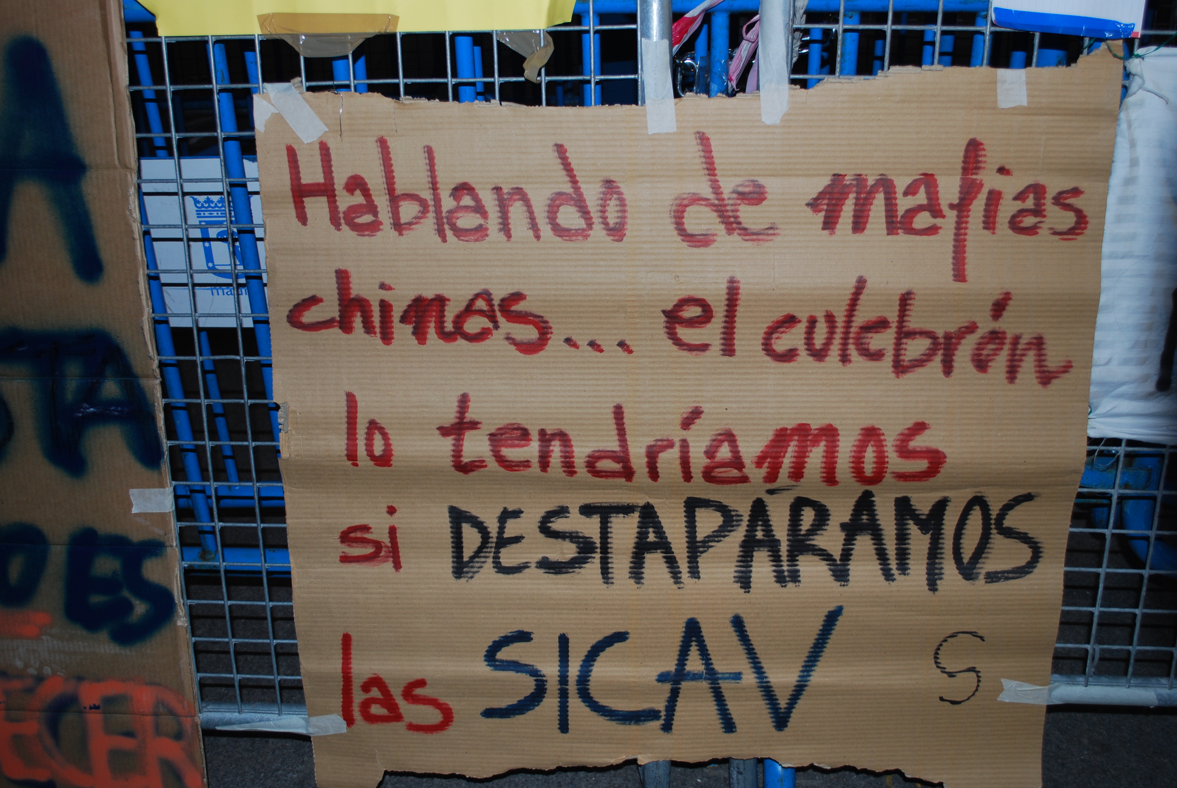 Uno de los carteles colocado en las vallas que rodean el Congreso hacía referencia a la 'Operación Emperador'