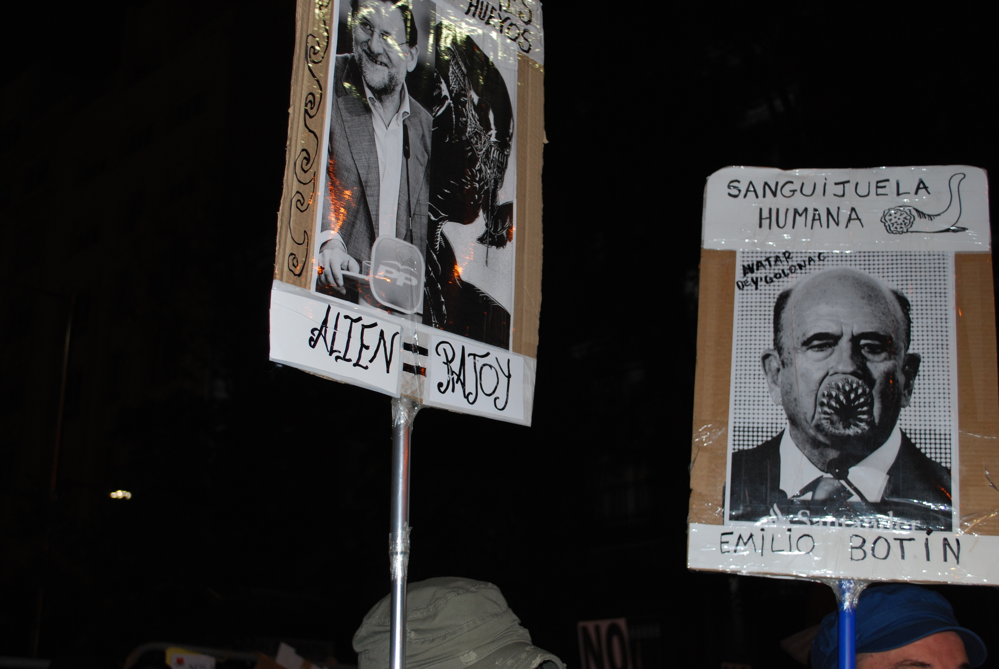 Rajoy y Botín representados de esta manera por dos manifestantes