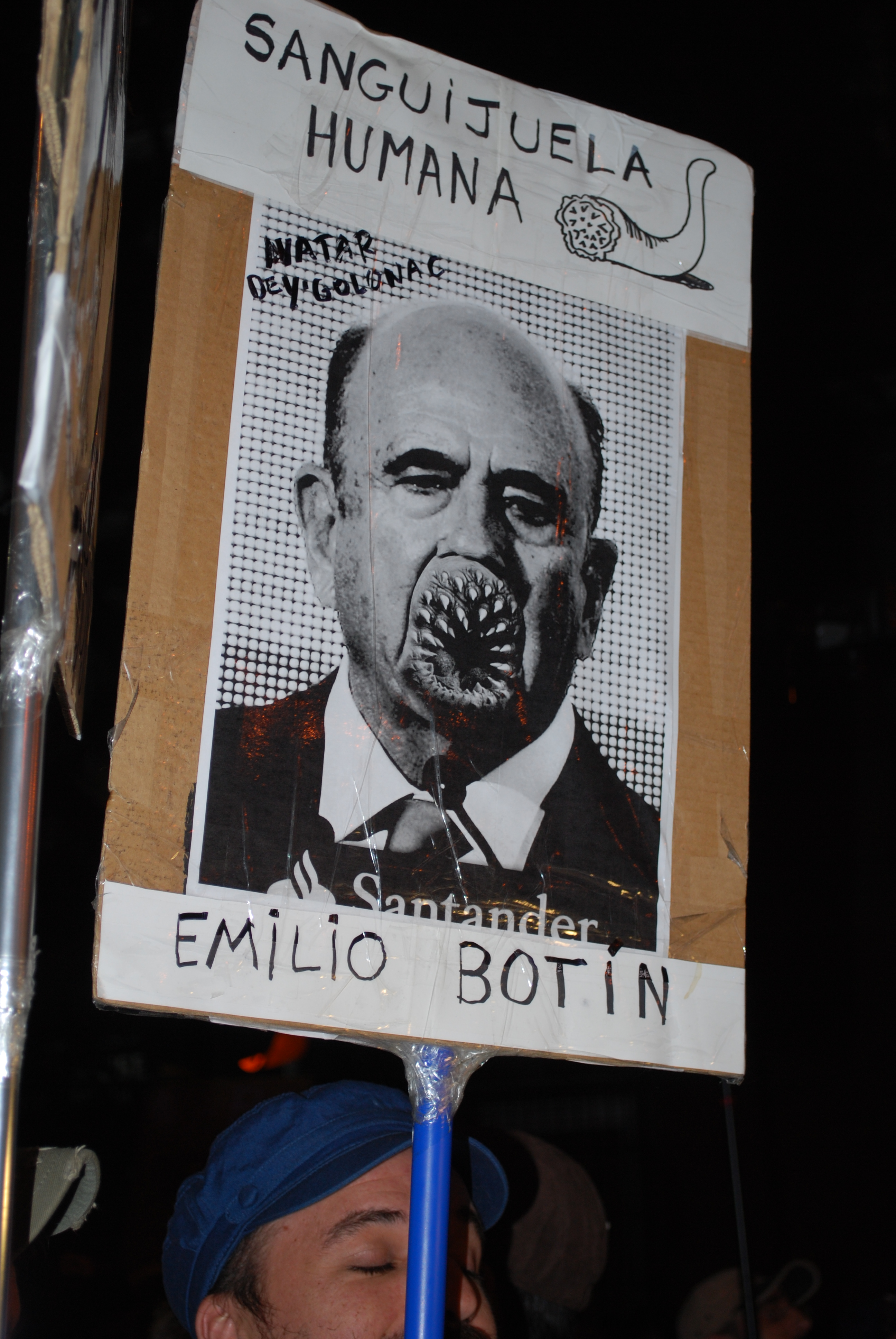 "Sanguijuela humana", llamaba este manifestante al presidente del Santander