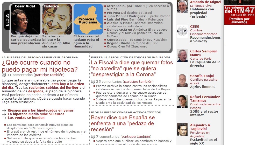 Tal día como hoy, 29 de octubre, pero de 2008, Libertad Digital contaba en su portada que "La Fiscalía dice que quemar fotos "no acredita" que se quiera "desprestigiar a la Corona"". El juez de lo Penal de la Audiencia Nacional absolvió a las 16 personas juzgadas por quemar fotografías del Rey el 22 de septiembre de 2007 en Gerona. Esta decisión vino después de que el fiscal modificara su acusación y considerara que los hechos eran constitutivos de una falta de desórdenes públicos en lugar de un delito contra la Corona.