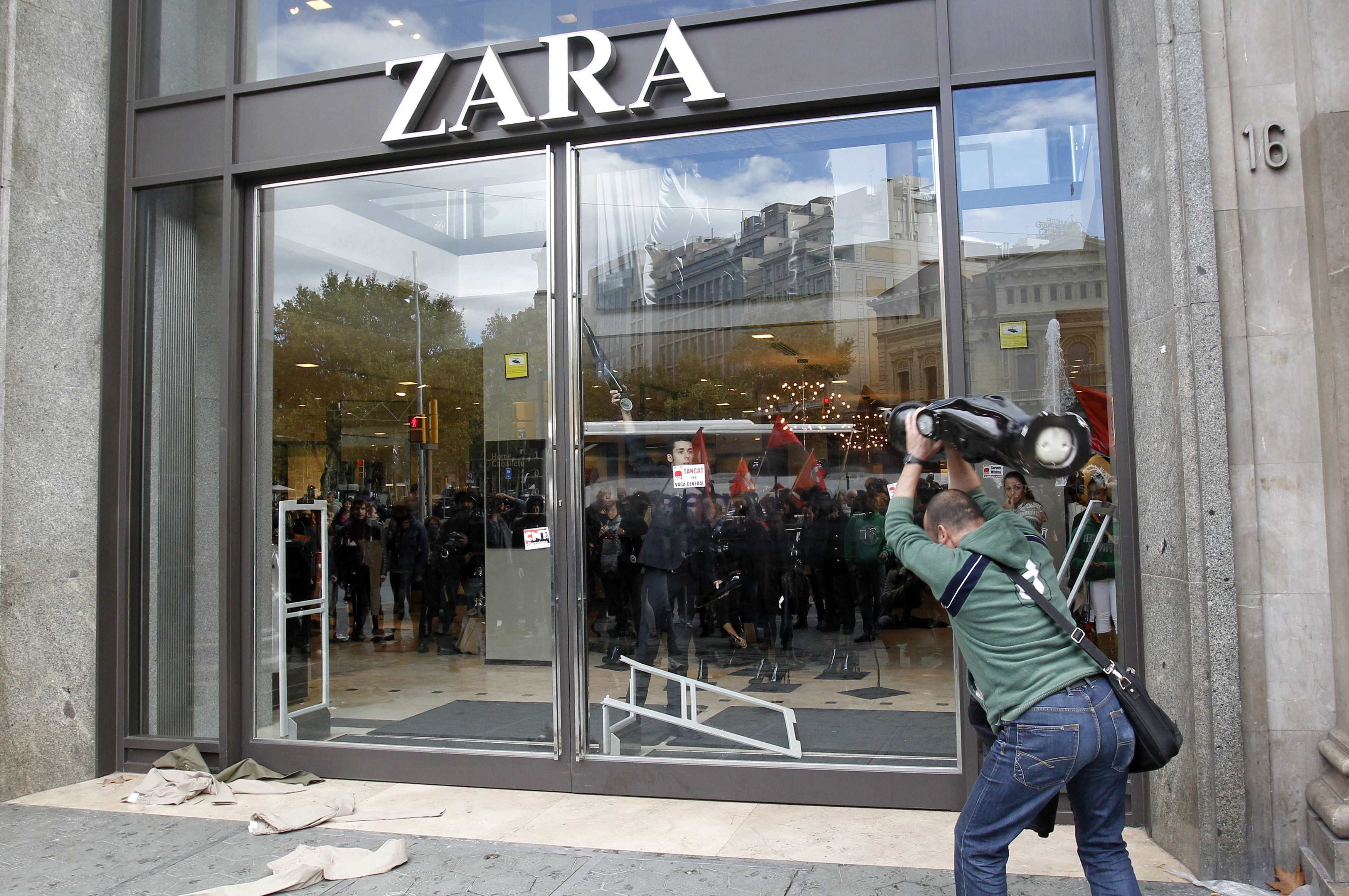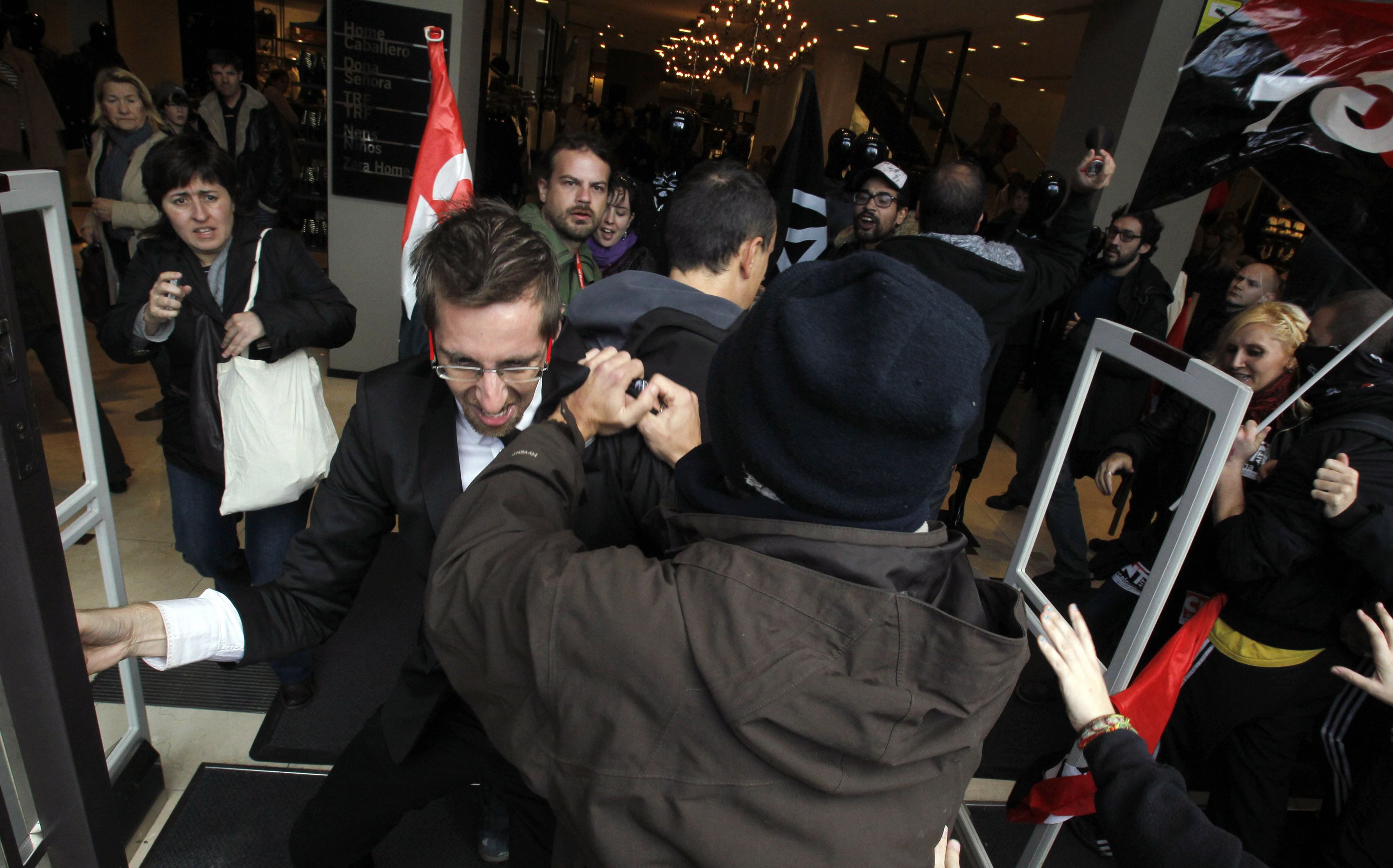 Los sindicalistas entran por la fuerza y la cara tapada a una tienda de Zara de la Ciudad Condal