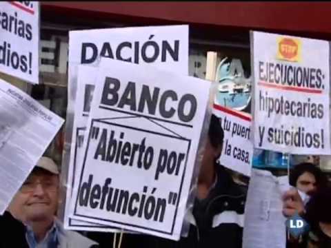 Decenas de personas se han concentrado junto a la sede central del PP en Madrid, convocados por la Plataforma de Afectados por la Hipoteca, donde han llevado a cabo una cacerolada contra el drama de los desahucios con gritos de "esos de ahí enfrente, matan a la gente".