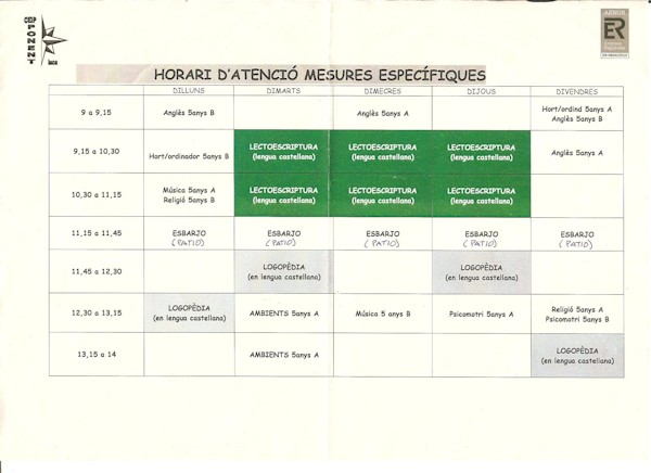 En la reunión mantenida con el equipo directivo y tutores del colegio Ponent de Inca, los padres y el Círculo Balear, se ha realizado una adaptación curricular elaborándose un nuevo horario en el que toda la lectoescritura se hará en español, 6 horas semanales, además de un refuerzo de horas de logopedia también en castellano, 3 horas más. El resto de materias (religión, música y gimnasia) se realizarán en la otra lengua cooficial, excepto las horas de inglés que se harán en esta lengua. Es decir, que de las 22,5 horas lectivas semanales, si no contamos las 2 horas y medio de patio, 9 horas se impartirán en español. El resto en inglés y en catalán", explican desde la fundación.