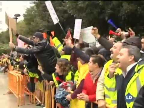 El presidente del Gobierno, Mariano Rajoy, ha sido recibido en Valencia con una protesta contra los recortes, protagonizada por varios cientos de ciudadanos congregados en las inmediaciones del Palacio de Congresos, donde el Jefe del Ejecutivo inaugura el II Congreso Nacional de Directivos.