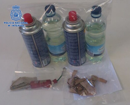 Llevaban en una mochila todos los elementos necesarios para montar en poco más de un par de minutos el artefacto explosivo. Exactamente, dos botellas de gas, dos botellas de agua rellenas de gasolina, clavos, tornillos y un petardo de grandes dimensiones que podía ser utilizado como detonador.