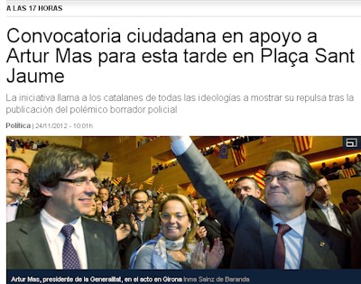 La edición digital del periódico La Vanguardia ha publicado este sábado una noticia en la que se habla de una convocatoria ciudadana para "arropar" a Artur Mas, frente a "la campaña de desprestigio orquestada desde Madrid" contra el presidente de la Generalidad.