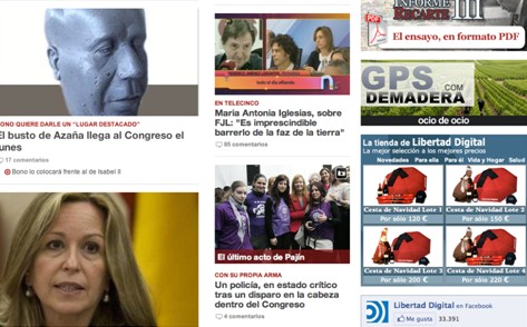 Tal día como hoy, 27 de noviembre, pero de 2011, Libertad Digital llevaba en su portada la última amenaza a Federico Jiménez Losantos: "María Antonia Iglesias, sobre FJL: "Es imprescindible barrerlo de la faz de la tierra"". La periodista arremetió duramente contra el presidente de LD en La Noria. Poco antes de que el presentador diera paso a la publicidad, Iglesias aseguró que es "imprescindible barrer de la faz de la tierra a gente como ese señor que habla de navajas, cuchillos, que en un talante absolutamente chulesco, guerracivilesco".