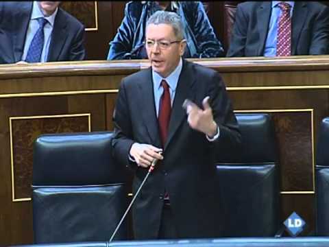 Alberto Ruiz Gallardón, ministro de Justicia: "Usted viene a decir que las mujeres que sean víctimas de violencia de género no paguen tasas judiciales. Esa ha sido su petición, ¿es cierto? Estoy diciendo lo que han dicho por escrito en una PM. Es decir, lo que usted viene a pedir hoy es que del 100% del coste del proceso solamente lo que suponen las tasas que es un 10% lo paguen. ¿Y el otro 90%? ¿Por qué no pide usted que las mujeres que sean víctimas de violencia de género en los procedimientos civiles, porque como ha recordado muy bien en los procedimientos penales están exentas, no paguen tampoco abogado y procurador? ¿Por qué usted viene solamente a decir no, no, no, no nos importa que paguen abogado y procurador, 90% del coste? Lo que decimos es que no paguen el 10% que es la recaudación de todos. Pues mire usted, le digo una cosa señoría, su petición es claramente insuficiente. Su petición es profundamente insolidaria con las mujeres que son víctimas de violencia de género".