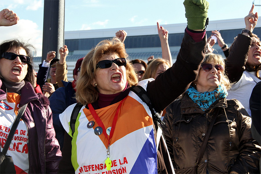 Tal y como contó ese mismo día Libertad Digital, un desfile de unos 500 trabajadores recorrió las instalaciones de la televisión señalando a sus compañeros y portando, detalle que desde el Comité de Empresa se había ocultado, cruces negras impresas en folios blancos.