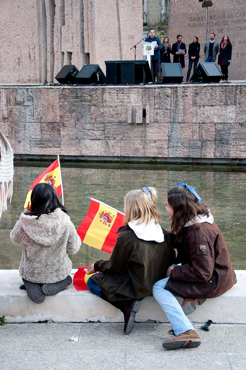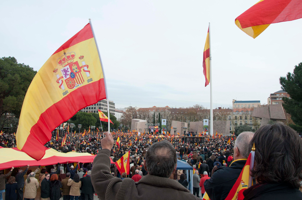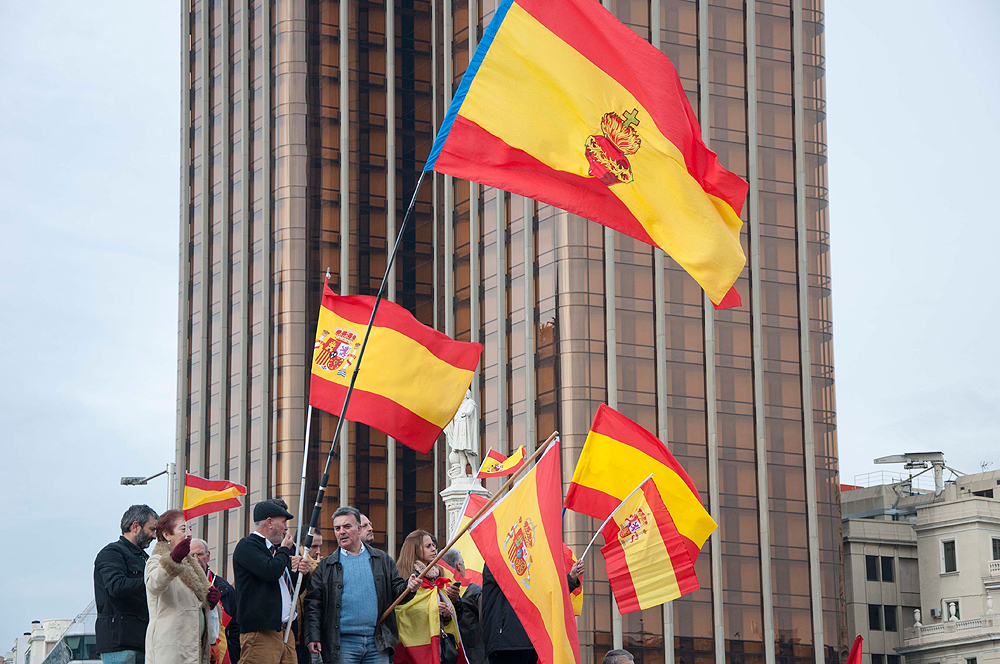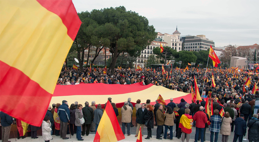 Poco antes de finalizar el acto, una gran bandera de España fue extendida por algunos de allí presentes.