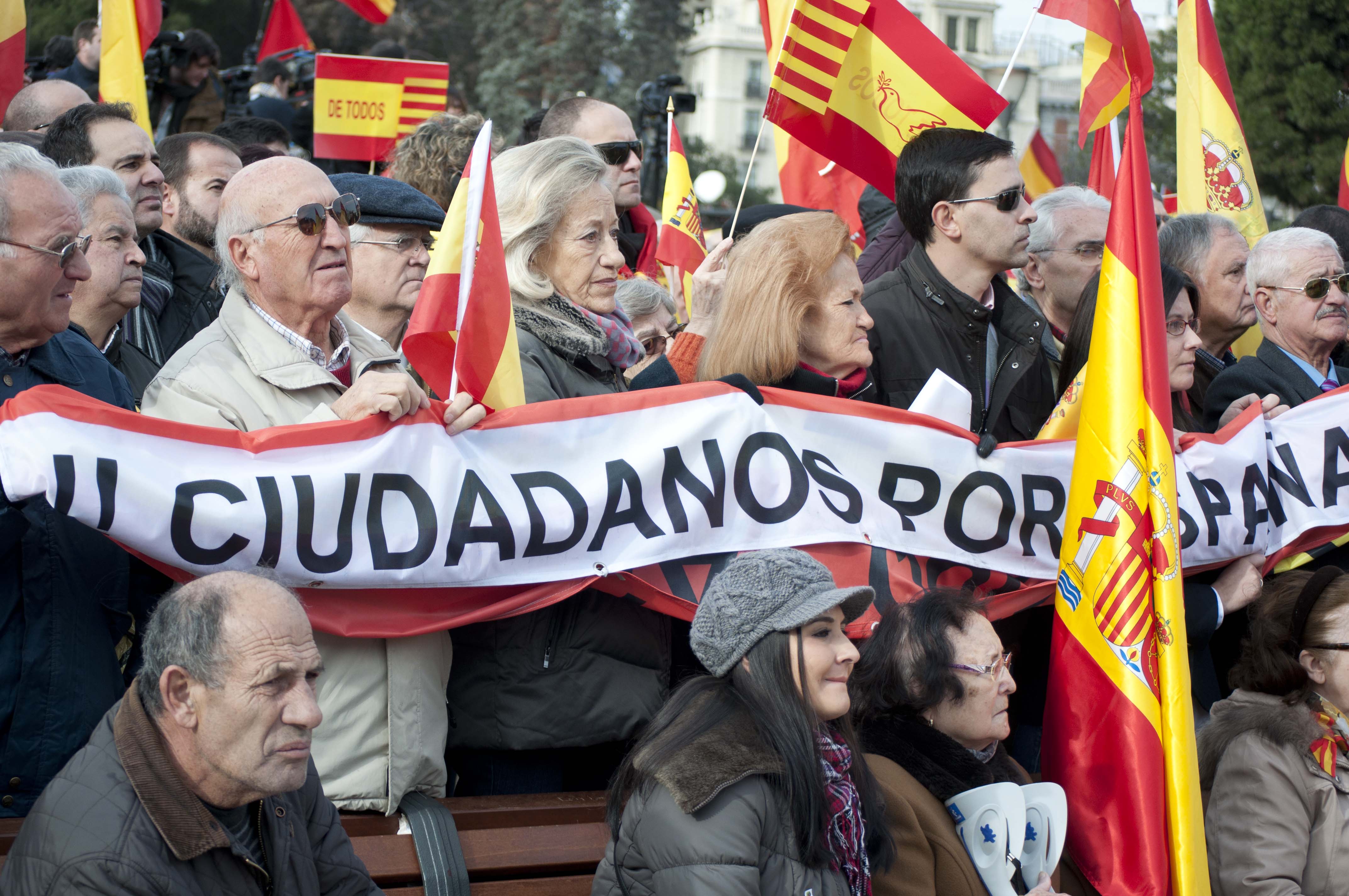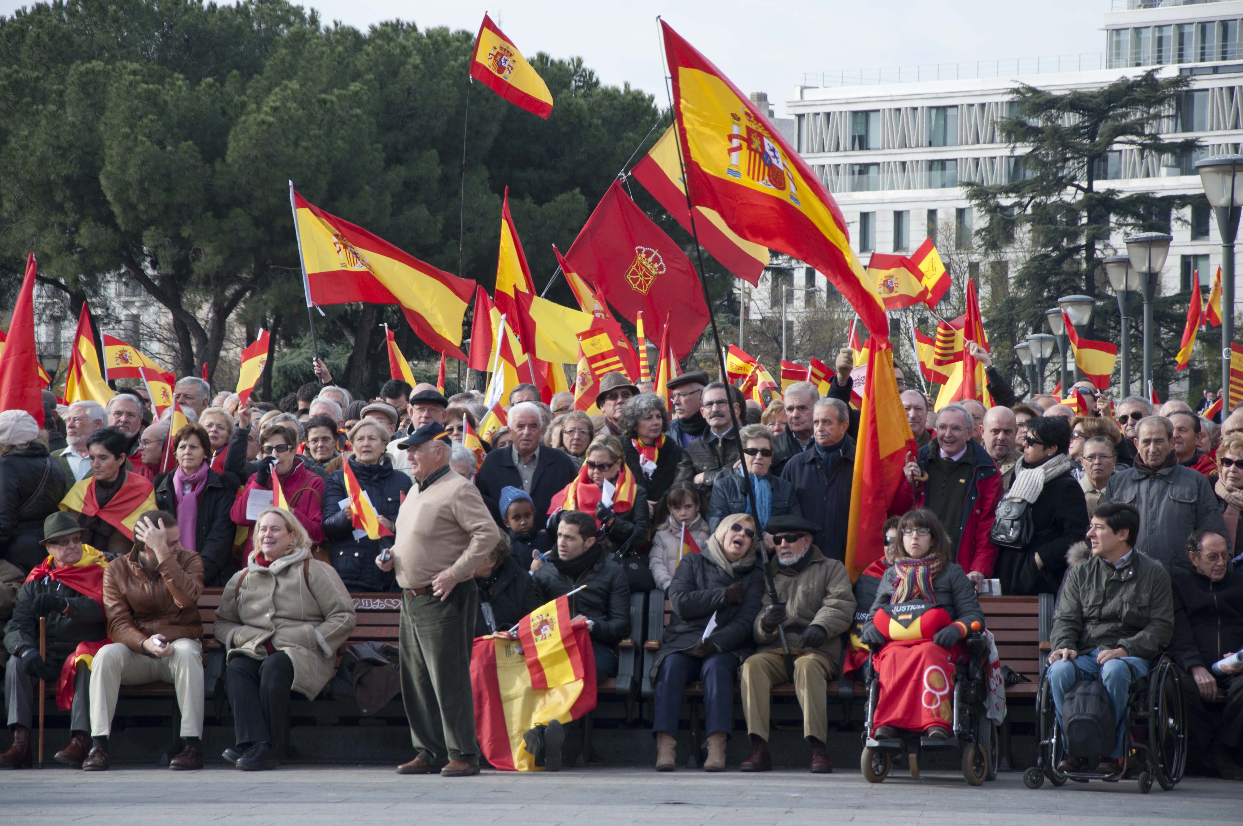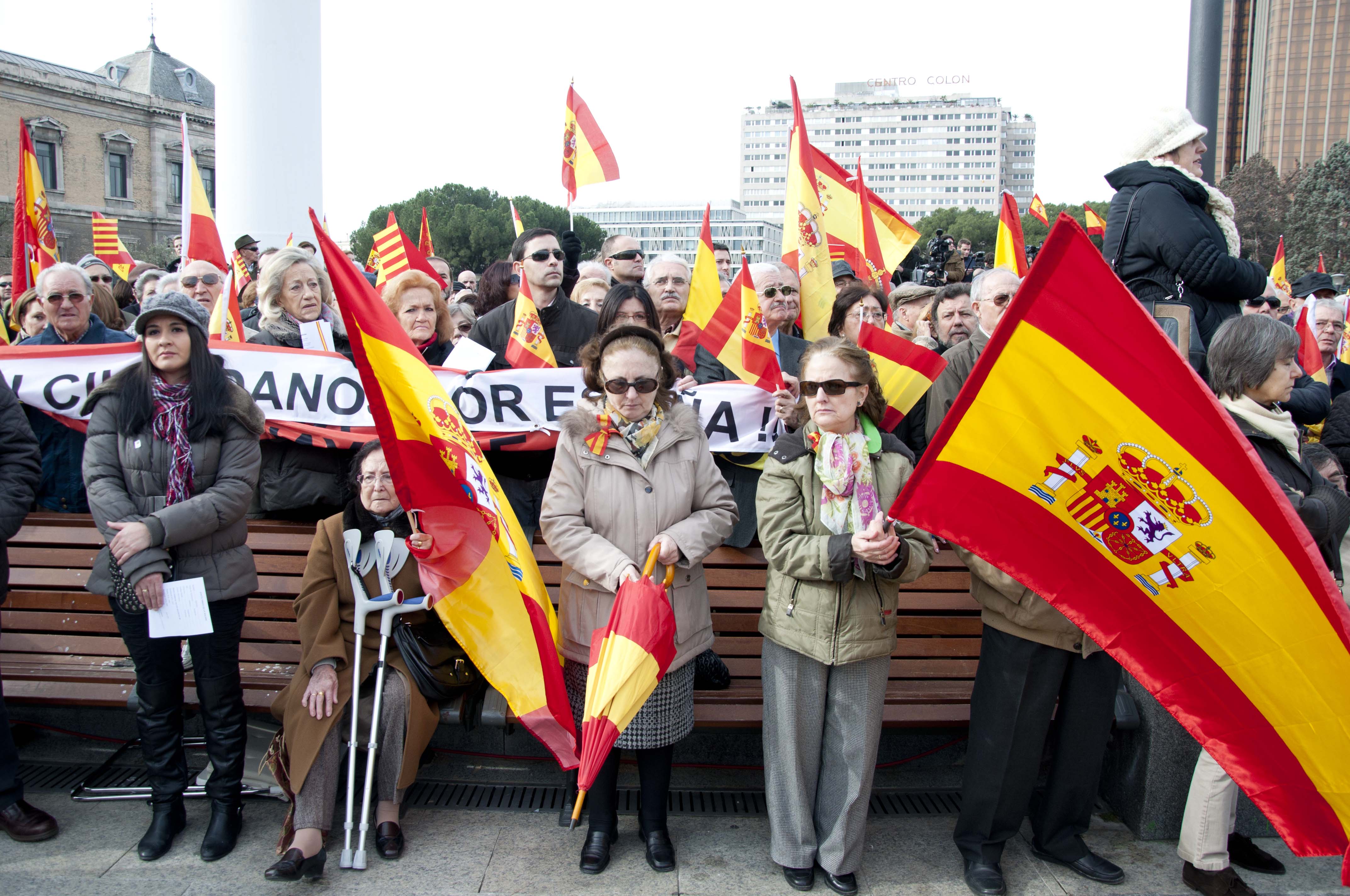 Varios miles de personas asistieron a la llamada por la unidad de España en la Plaza de Colón de Madrid.
