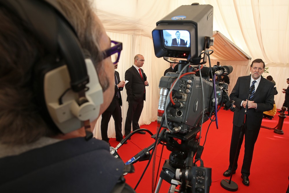 Mariano Rajoy, en el Senado, durante su breve declaración ante los medios de comunicación
