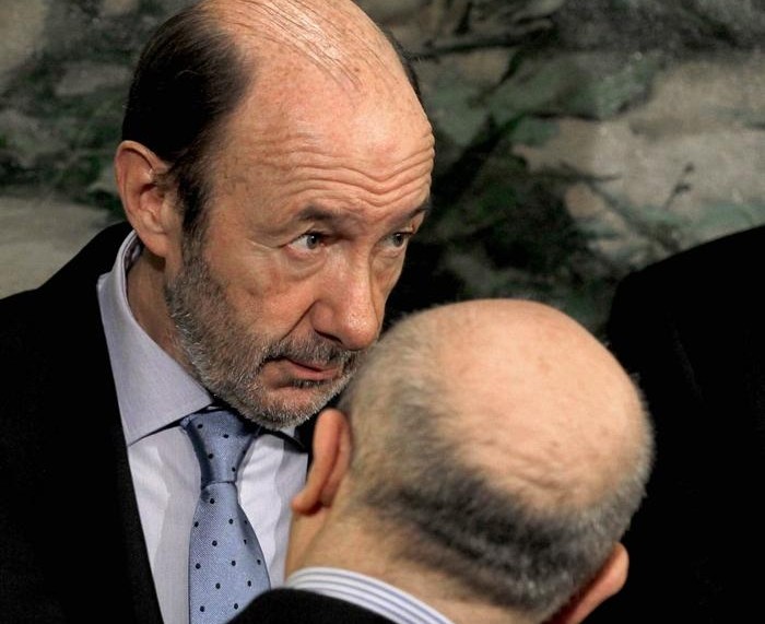 Los presidentes del Congreso, Jesús Posada (i), y del Senado, Pío García Escudero (d), durante el acto solemne de izado de la bandera nacional en los Jardines del Descubrimiento de la Plaza de Colón.