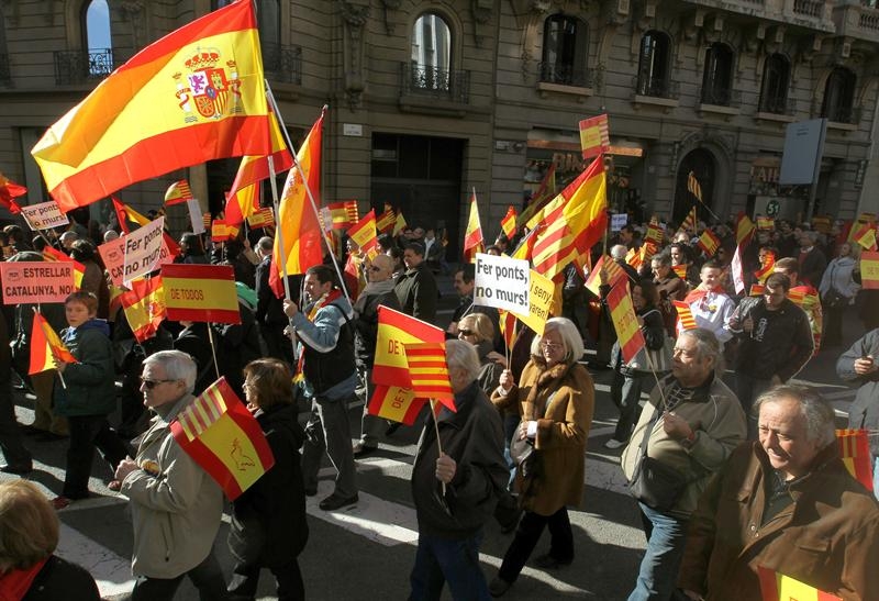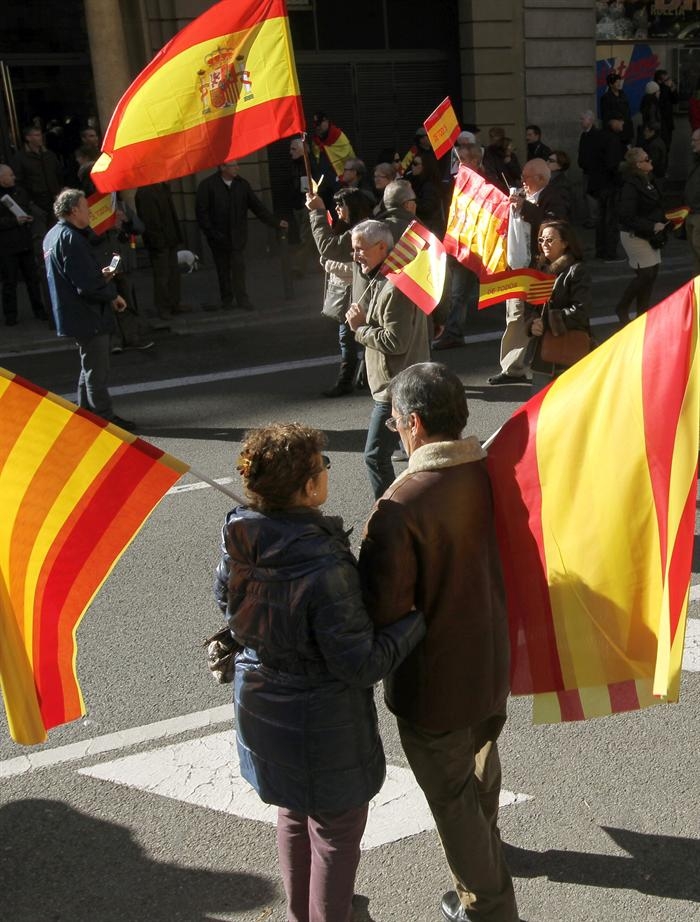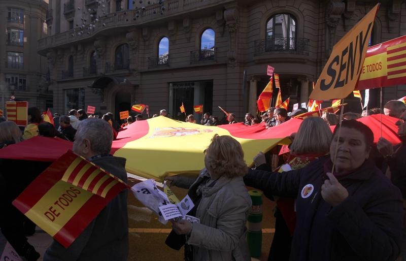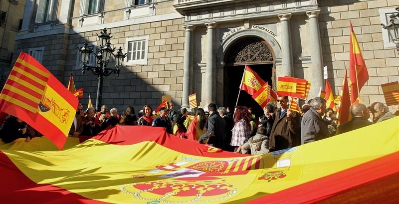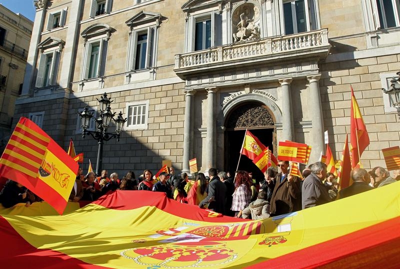 Miles de personas se manifestaron también en Barcelona, en la plaza de San Jaime, frente al Palacio de la Generalidad, en defensa de la Unidad de España. | Fotos EFE