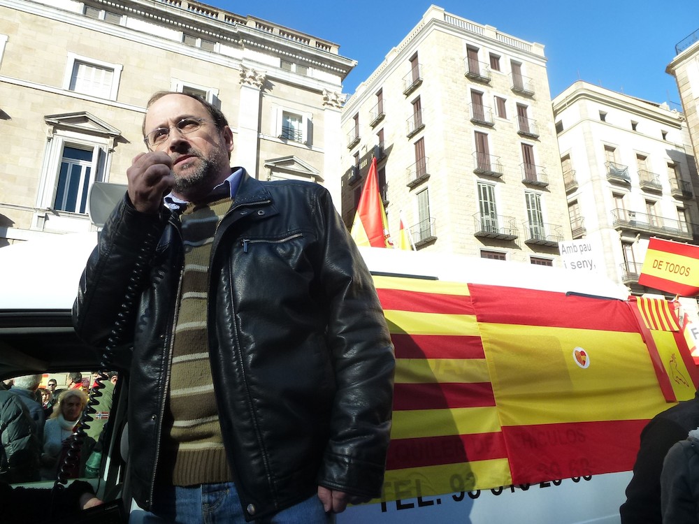 Miles de personas salieron también a la calle en Barcelona. En la imagen, Manel Parra se dirige a los manifestantes.