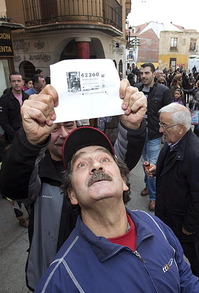 Un vecino de Aranda de Duero muestra una reproducción del número 42.260, premiado con el segundo premio