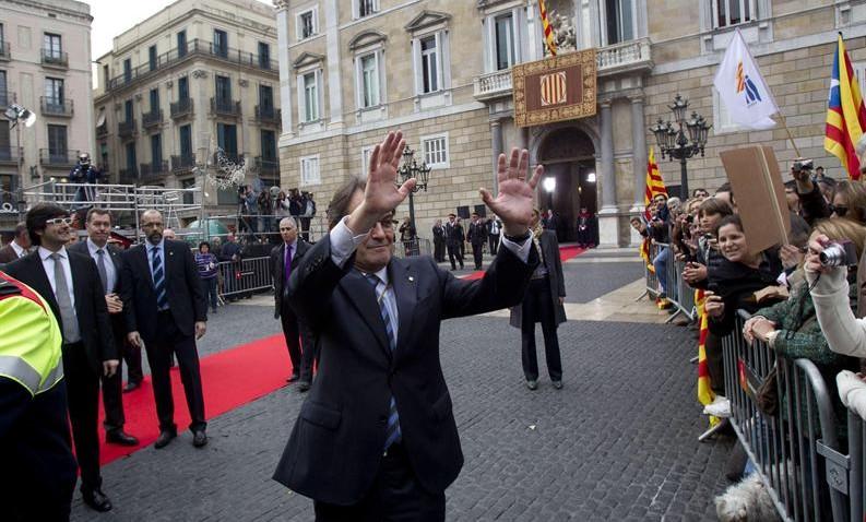 Artur Mas tomó hoy posesión de su cargo como presidente de la Generalidad en presencia del ministro de Hacienda, Cristóbal Montoro, que fue abucheado a la entrada. Tras serle preguntado por la presidenta del Parlamento catalán si juraba "guardar fidelidad al Rey y a la Constitución", Mas apostilló. "Sí, prometo plena fidelidad al pueblo de Cataluña" utilizando la misma fórmula que en la pasada legislatura.