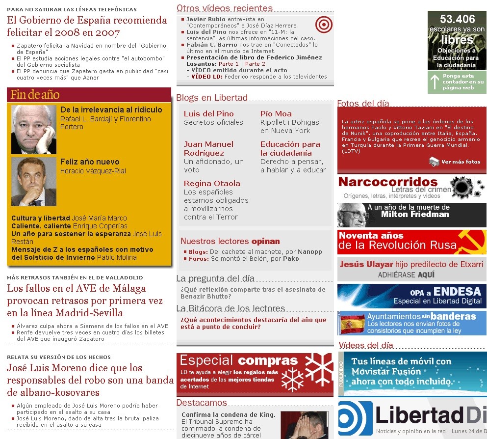 Tal día como hoy, 28 de diciembre, pero de 2007, Libertad Digital llevaba en su portada la última ocurrencia del Gobierno de Zapatero para evitar colapsar las redes de telefonía móvil en la noche de fin de año: "El Gobierno de España recomienda felicitar el 2008 en 2007".