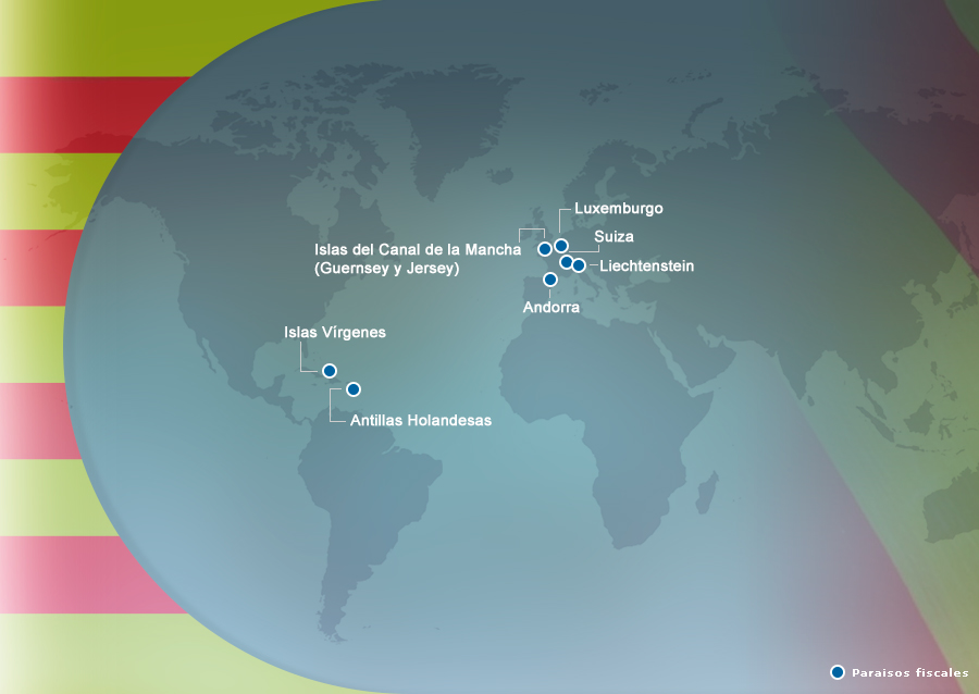 Las familias Pujol y Mas han reinterpretado la ensoñación nacionalista de los Països Catalans desperdigando sus fortunas por prácticamente todos los paraísos fiscales conocidos. A continuación repasamos los lugares en los que han aparecido cuentas bancarias o negocios de Jordi Pujol Soley, Marta Ferrusola, Artur Mas (padre e hijo), Jordi Pujol Ferrusola, Oriol Pujol Ferrusola y Oleguer Pujol Ferrusola. No hemos podido ubicar a Josep Pujol Ferrusola El seductor, que aunque ha reconocido que tiene dinero en paraísos fiscales –acaba de regularizar dos millones de euros, pero según otras fuentes podría tener hasta 22. Ganó seis con la venta de la consultora Europraxis (tenía el 14% de las acciones) a Indra– pero no ha especificado en cuál o cuáles. Podría compartir alguno, o más de uno, con sus familiares o quizá aporte en próximas fechas un punto más, a este nuevo mapa de los Països Catalans.