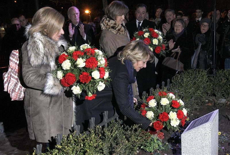 Tras las palabras de Iribar, ella misma, acompañada por su cuñada, la hermana del concejal asesinado Consuelo Ordóñez, y la expresidenta regional depositaron un ramo flores junto a la placa que recuerda en el parque al político donostiarra, colocada junto a un roble que fue plantado el día que los jardines cambiaron de nombre.
