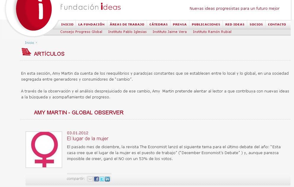 La Fundación Ideas del PSOE, que preside Alfredo Pérez Rubalcaba, pagó 50.000 euros por diversos artículos a una presunta escritora llamada Amy Martin, cuya marca comercial y logotipo están registrados por el propio director de la institución, Carlos Mulas. Según informa El Mundo, la autora fantasma ha llegado a cobrar 3.000 euros por artículo.
