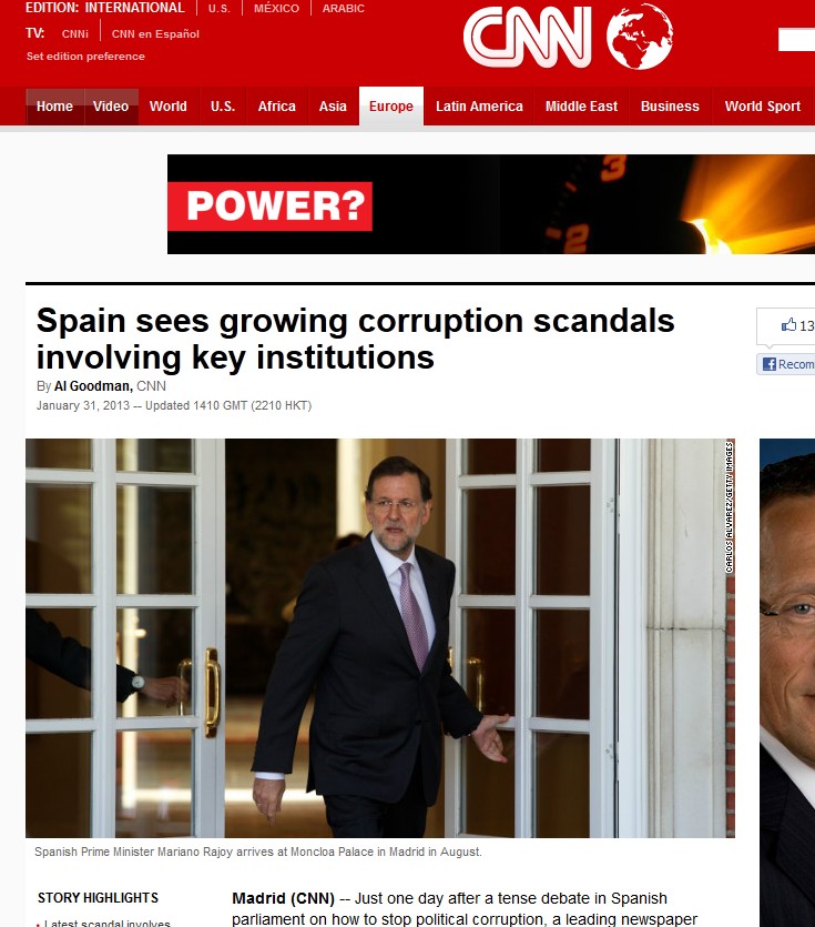 La televisión de EEUU aseguraba en su página web que "España ve crecientes escándalos de corrupción que involucran a instituciones clave"