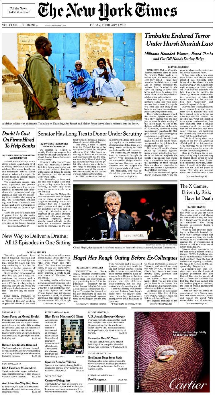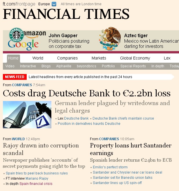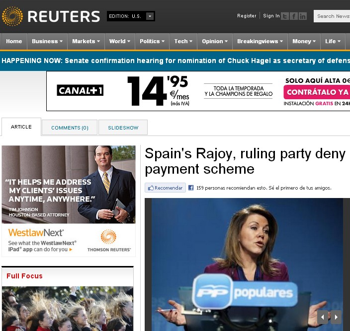 El caso Bárcenas no ocupa un lugar importante en The New York Times. En la parte inferior central se informa del caso Bárcenas