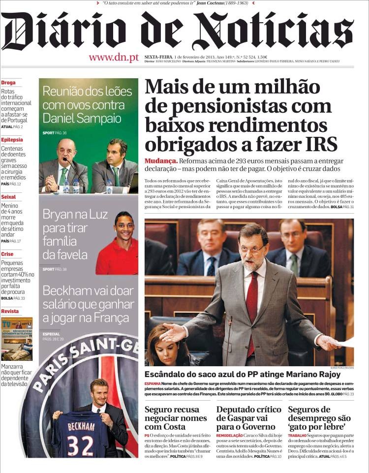 Diario de Noticias (Portugal) informa de que el "escándalo" salpica al presidente del Gobierno, Mariano Rajoy