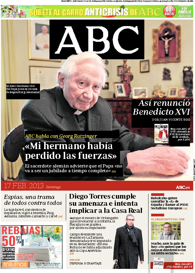 ABC habla con Georg Ratzinger: "Mi hermano había perdido las fuerzas"