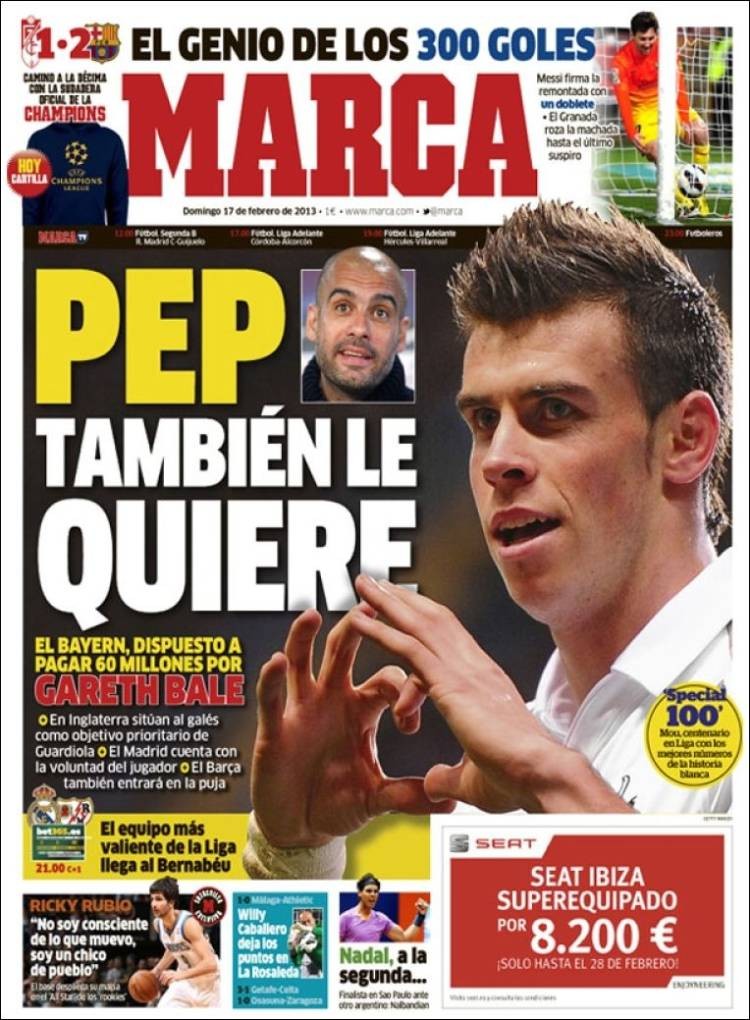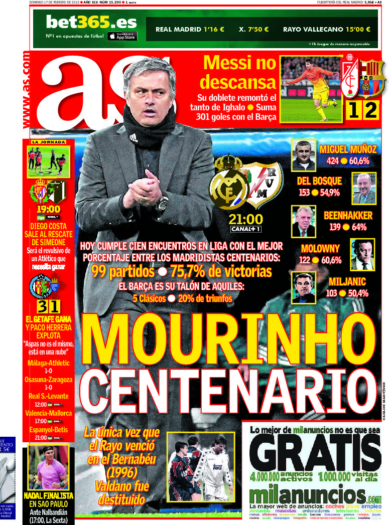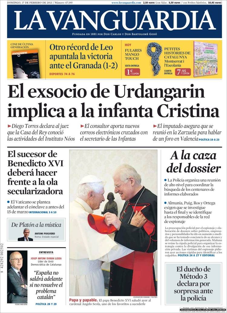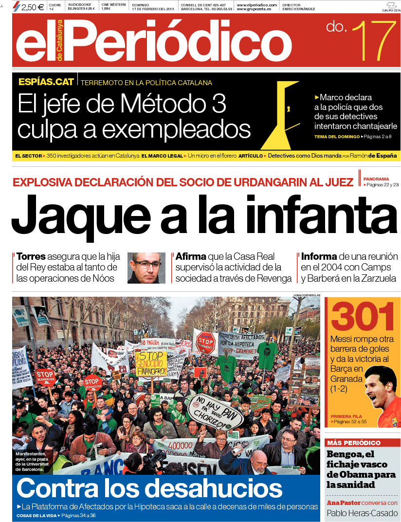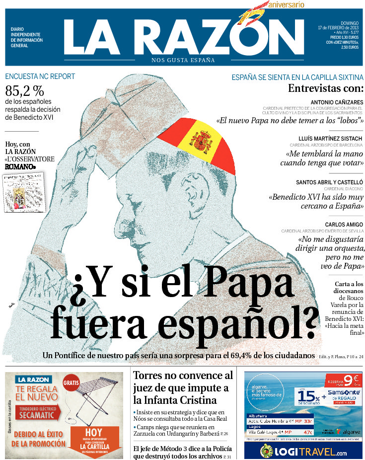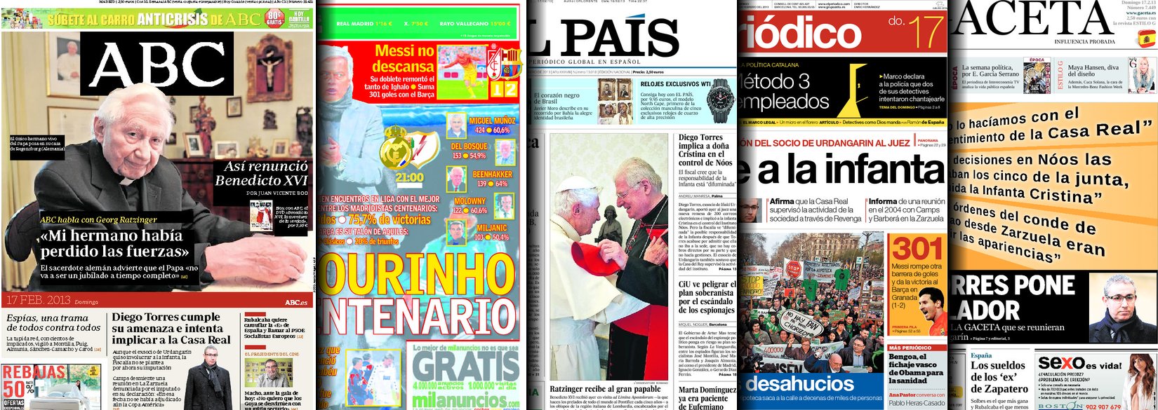 Portadas de los diarios ABC, El País, La Razón, La Gaceta, El Periódico y As.