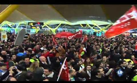 Las protestas de los trabajadores de Iberia desbordan la T-4 de Barajas