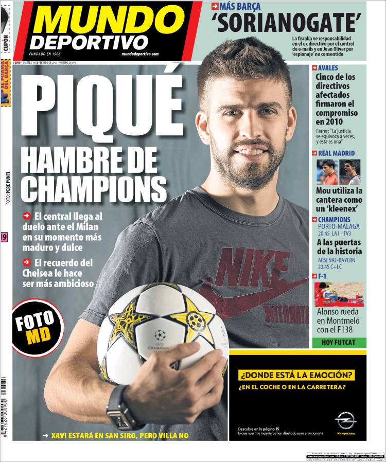 Portadas de los diarios El Mundo, El País, ABC, La Razón, La Vanguardia, La Gaceta, El Periódico, Cinco Días, El Economista, Expansión, Marca, As, Mundo Deportivo y Sport.