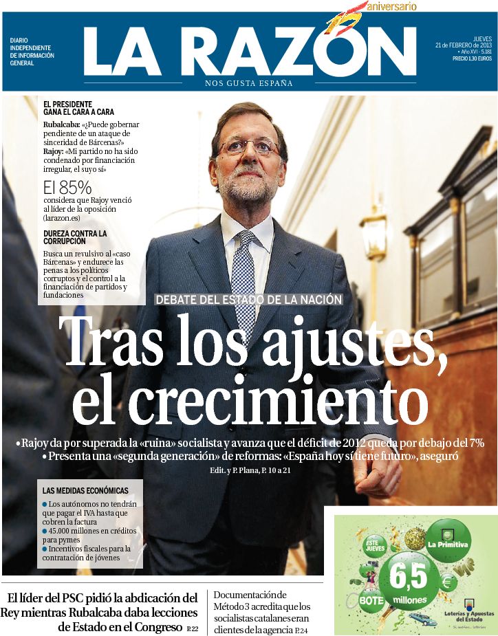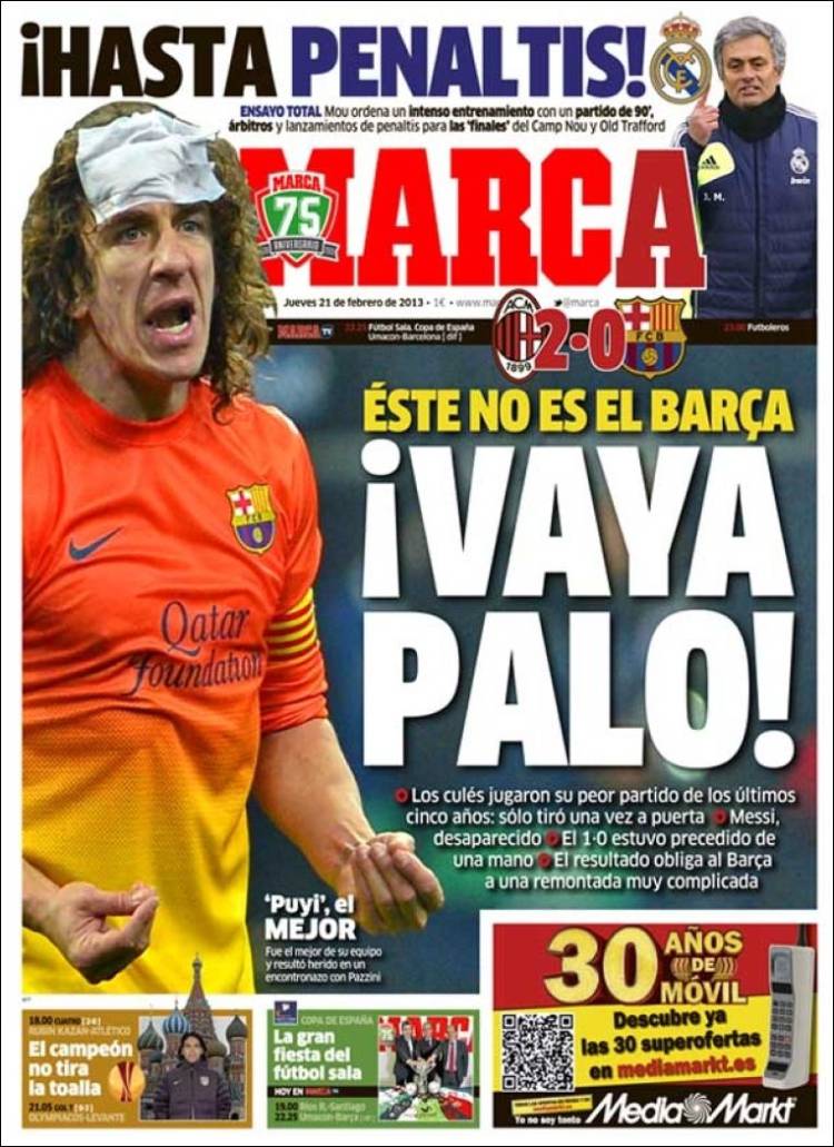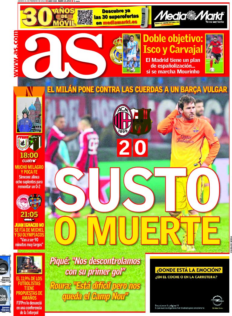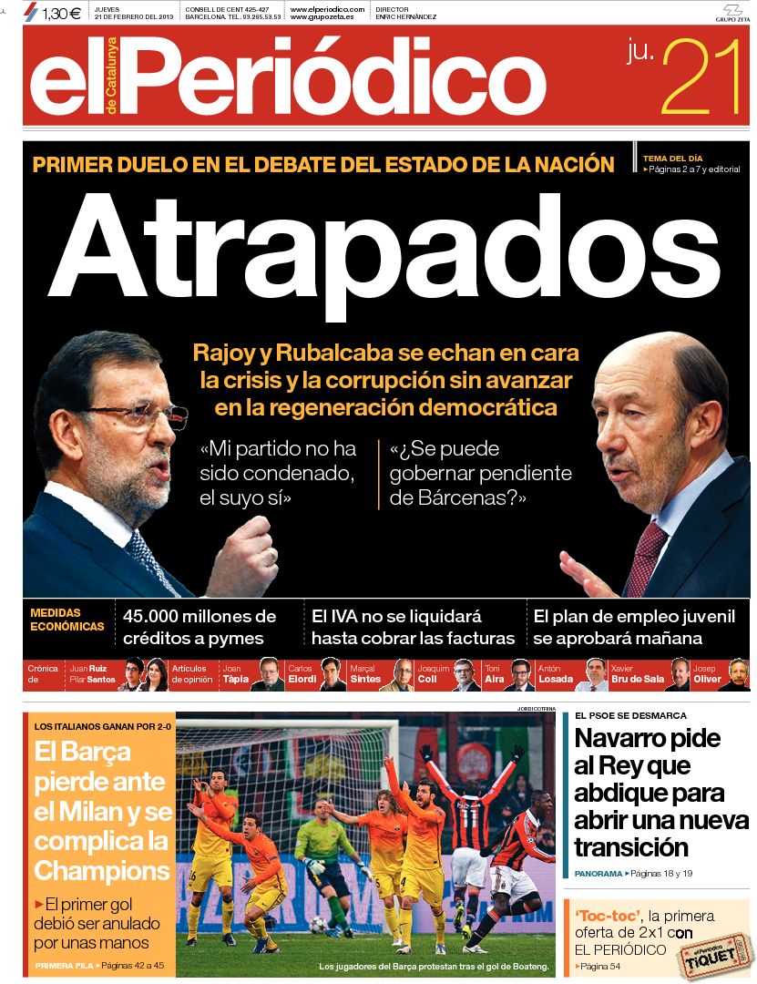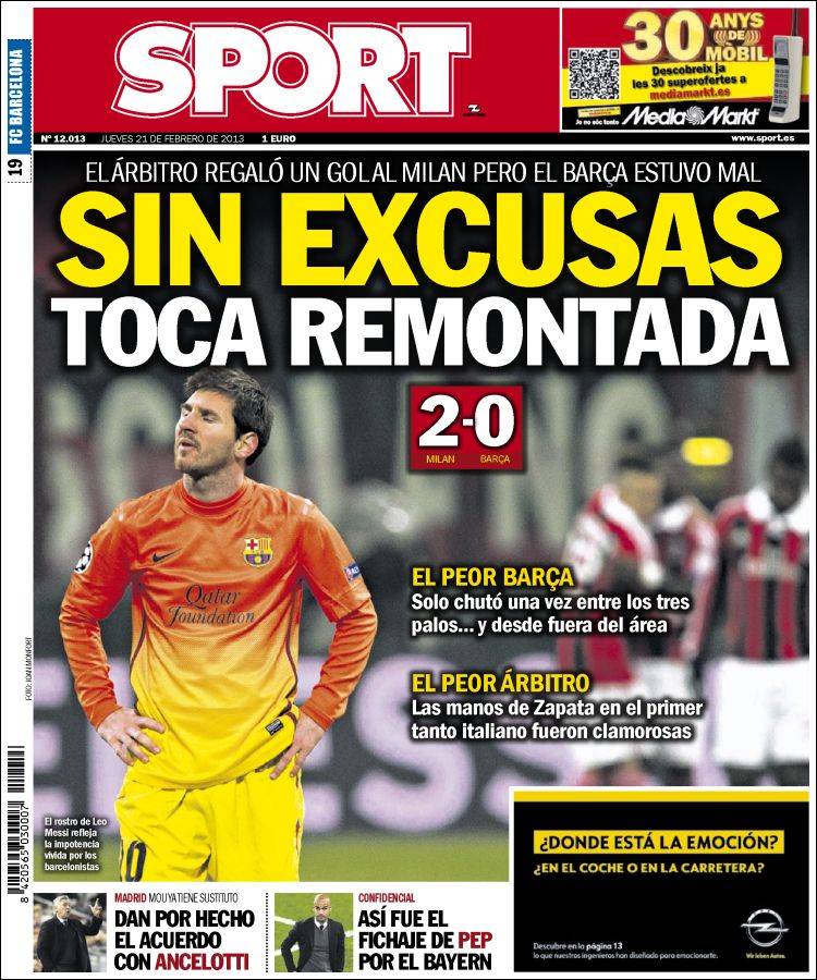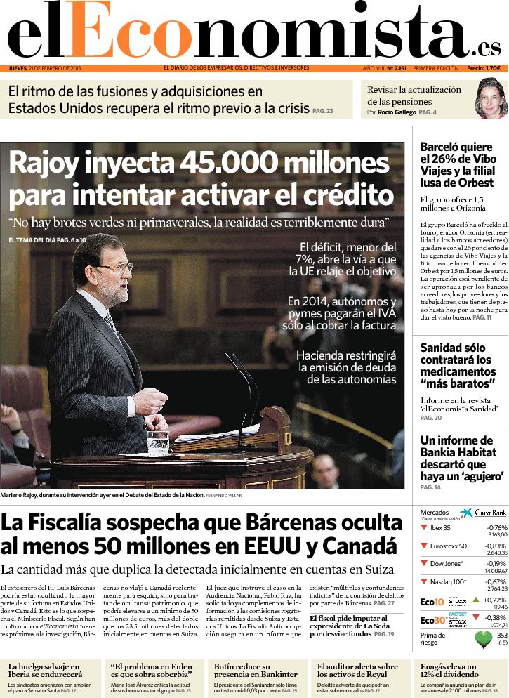 Portadas de los diarios El Mundo, El País, ABC, La Razón, La Vanguardia, La Gaceta, El Periódico, Cinco Días, El Economista, Expansión, Marca, As, Mundo Deportivo y Sport.