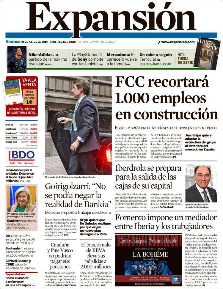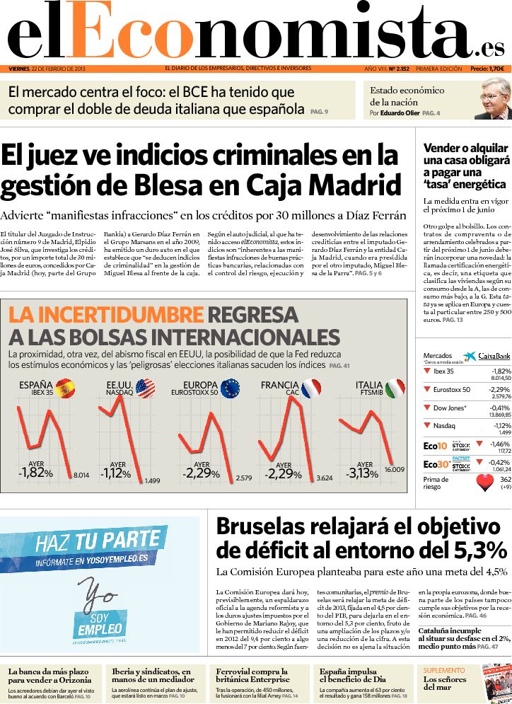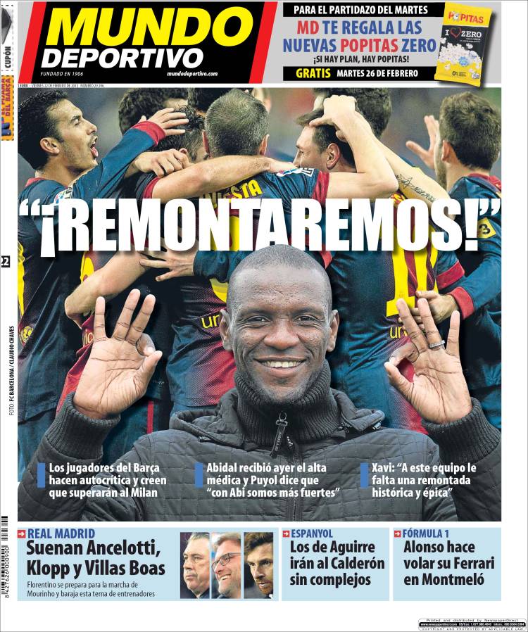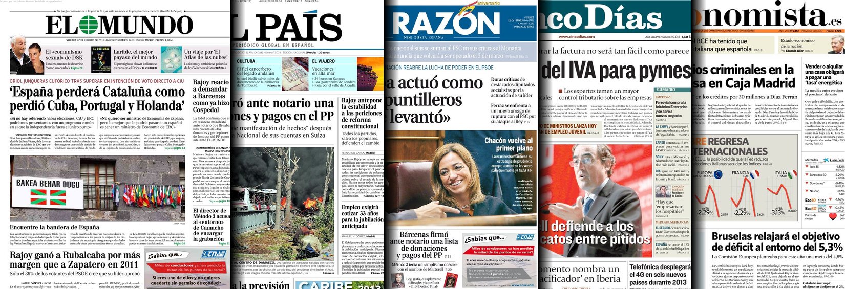 Portadas de los diarios El Mundo, El País, ABC, La Razón, La Vanguardia, La Gaceta, El Periódico, Cinco Días, El Economista, Expansión, Marca, As, Mundo Deportivo y Sport.