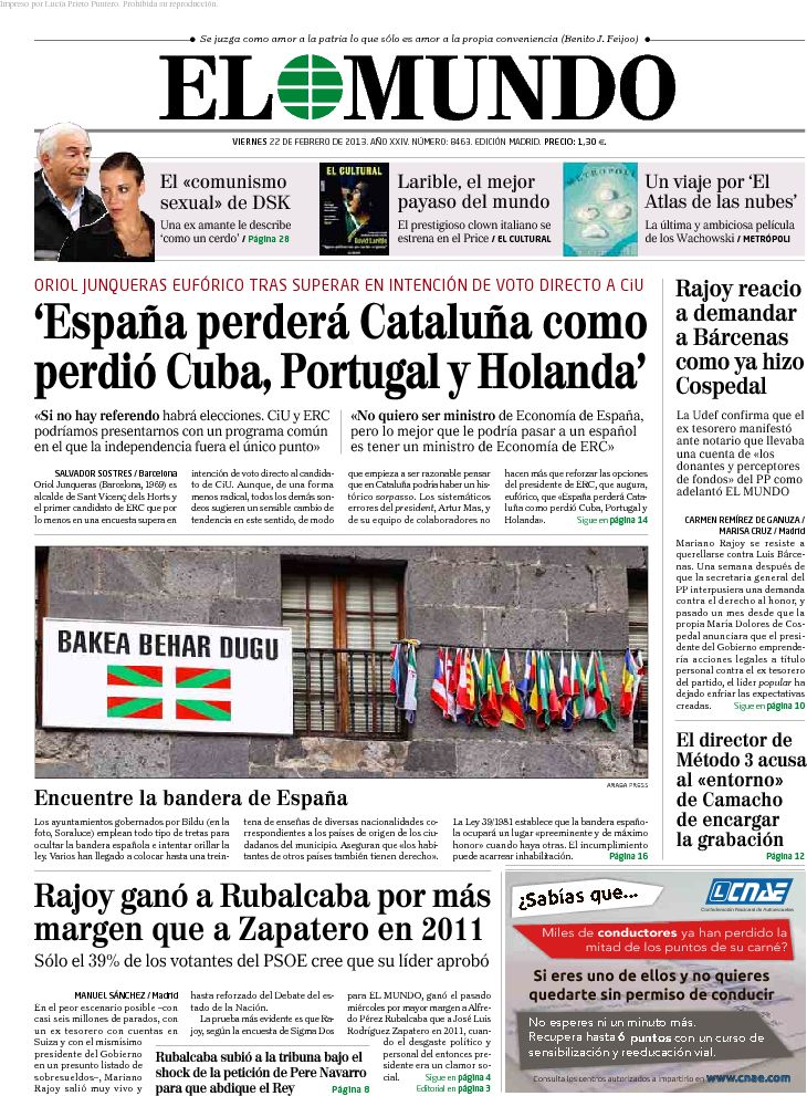 "Bárcenas declaró ante notario que su fortuna no procede del PP";"Rajoy sale fortalecido de un Debate que apuntala a su Gobierno"