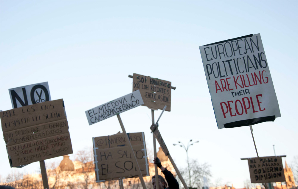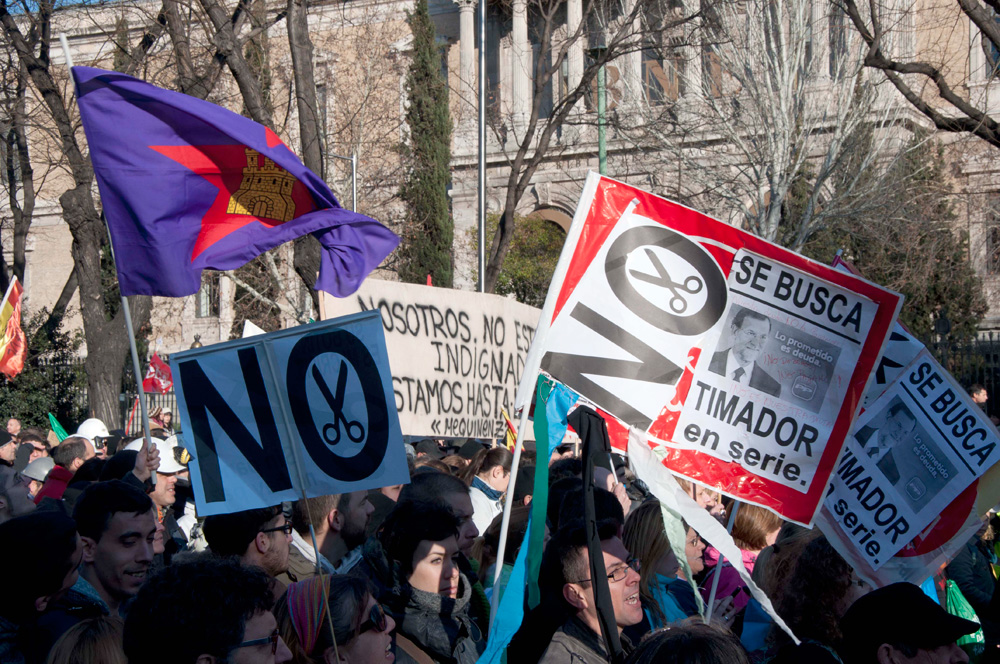 Los recortes, protagonistas indiscutibles de muchas de las pancartas de los manifestantes del 23F.