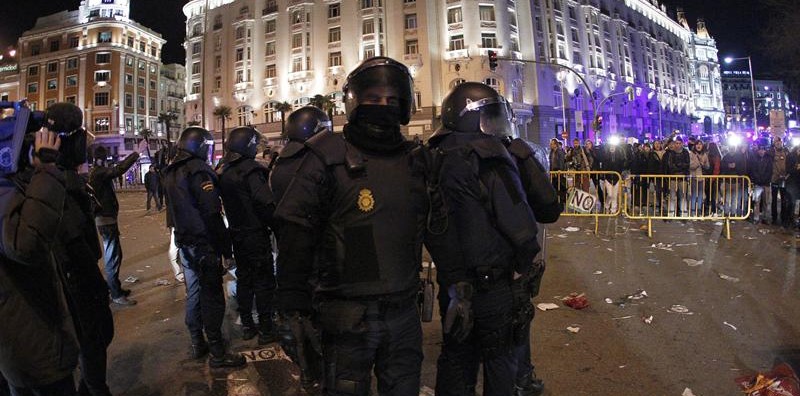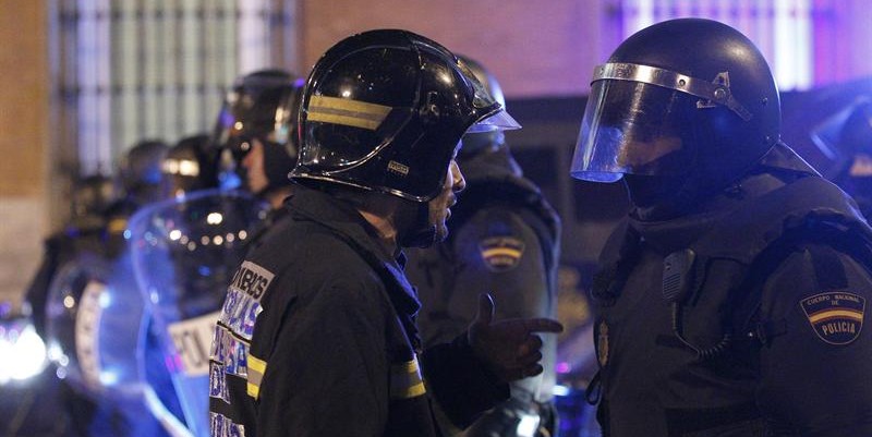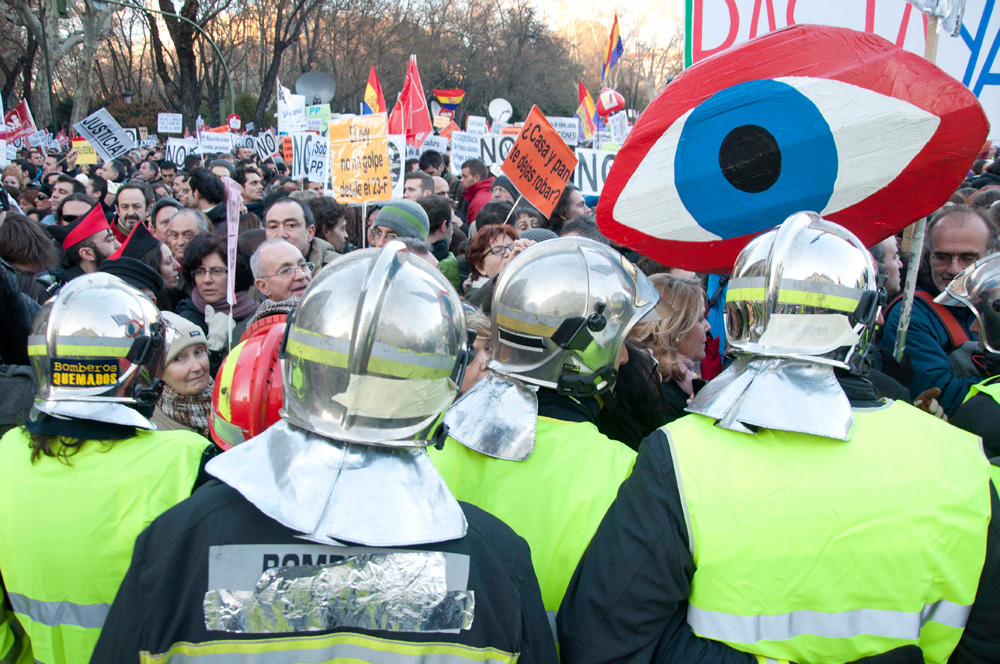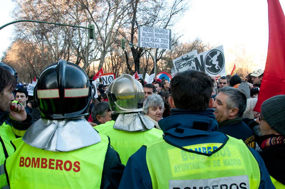 Los bomberos de la Comunidad de Madrid y el Ayuntamiento fueron los encargados voluntarios de mantener el orden cerca de la plaza de las Cortes.