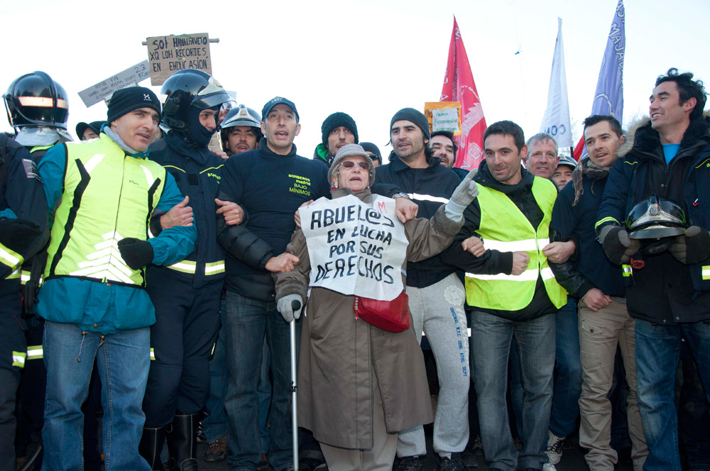 Una anciana muestra su apoyo a la manifestación reivindicando los derechos de los abuelos.
