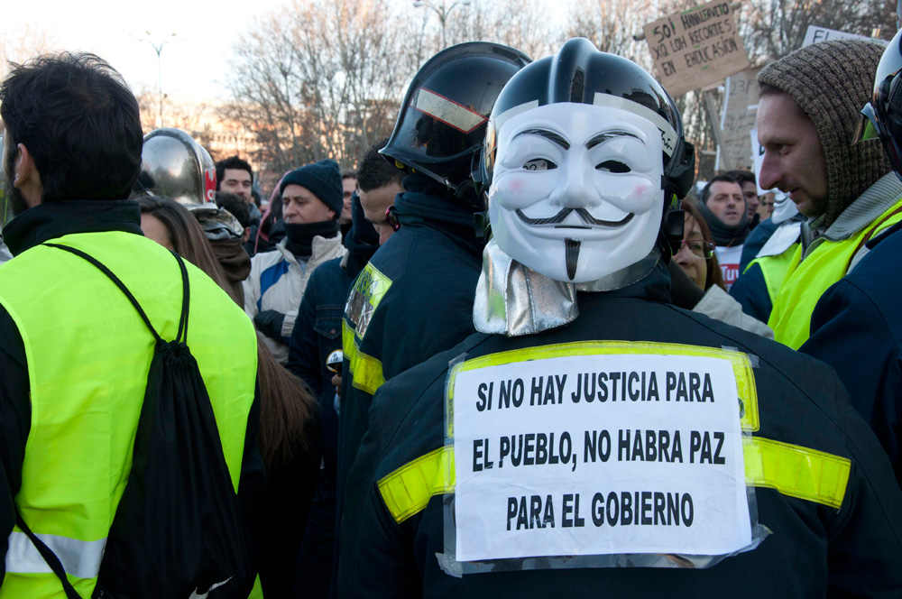 "Si no hay justicia para el pueblo no habrá paz para el gobierno". Además de bombero, también Anonymous.