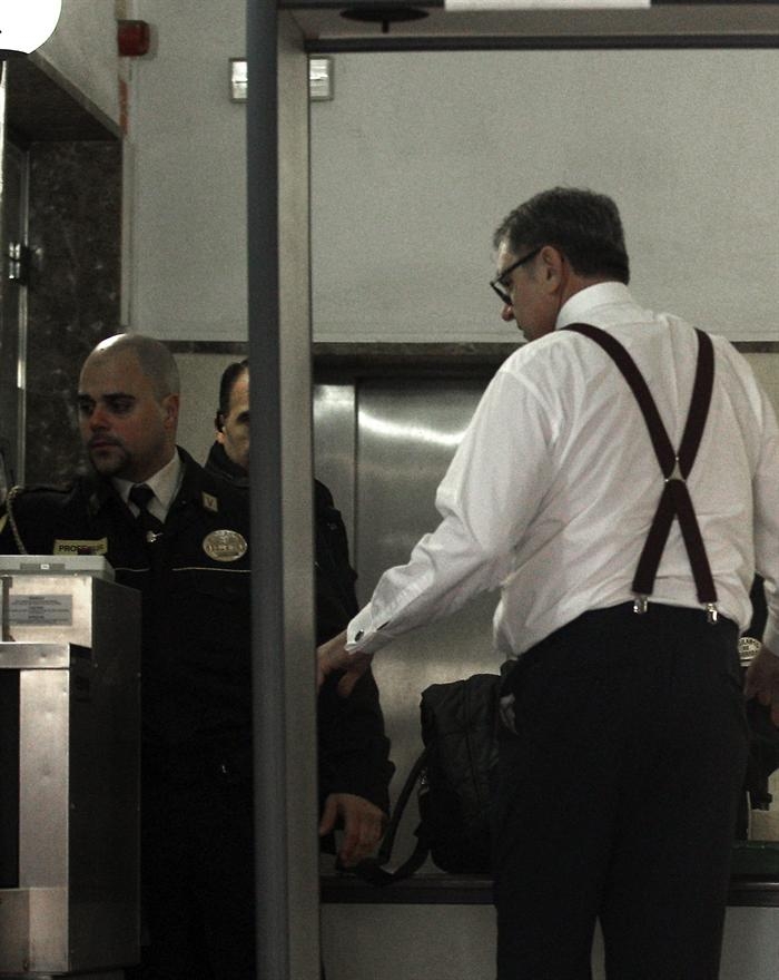 El secretario de las infantas Elena y Cristina, Carlos García Revenga, pasa por el arco policial, a su llegada a los juzgados.