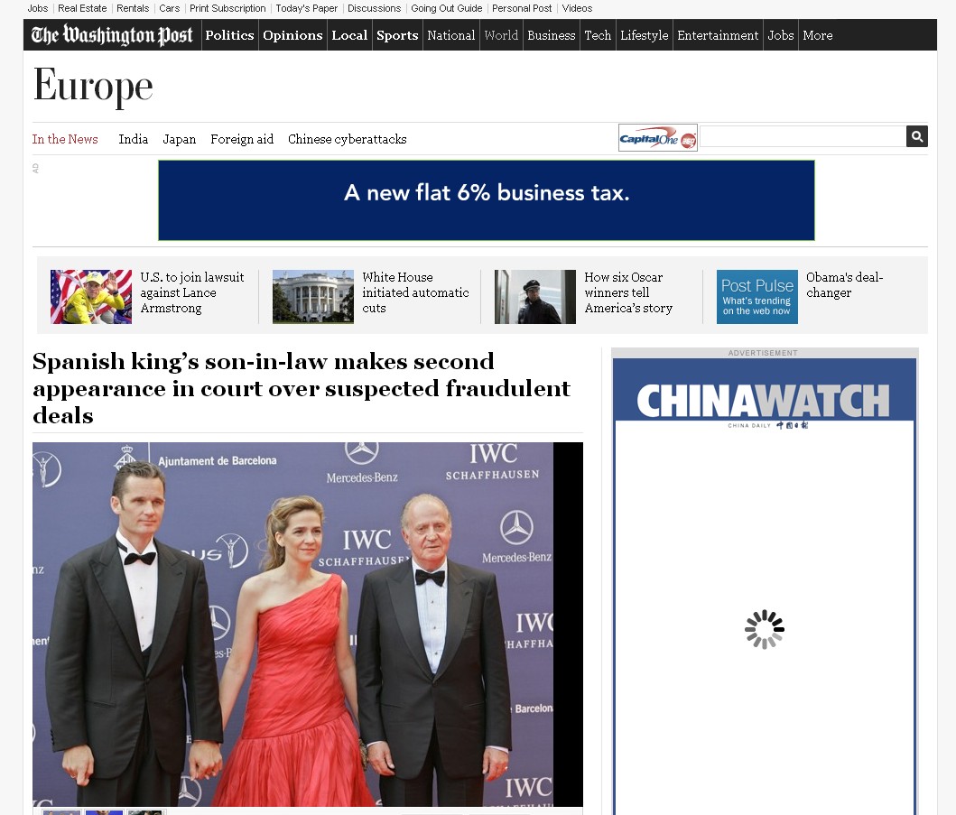 El Washington Post titula: "El yerno del Rey hace su segunda aparición en el juzgado por supuestas apuestas fraudulentas".