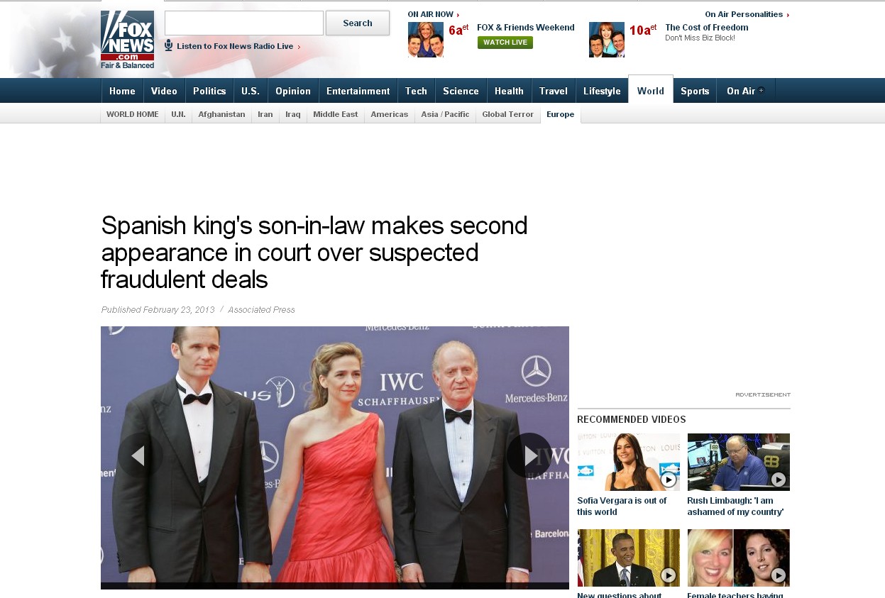 La cadena americana Fox News también informa sobre la "segunda aparición del yerno del Rey en los juzgados".